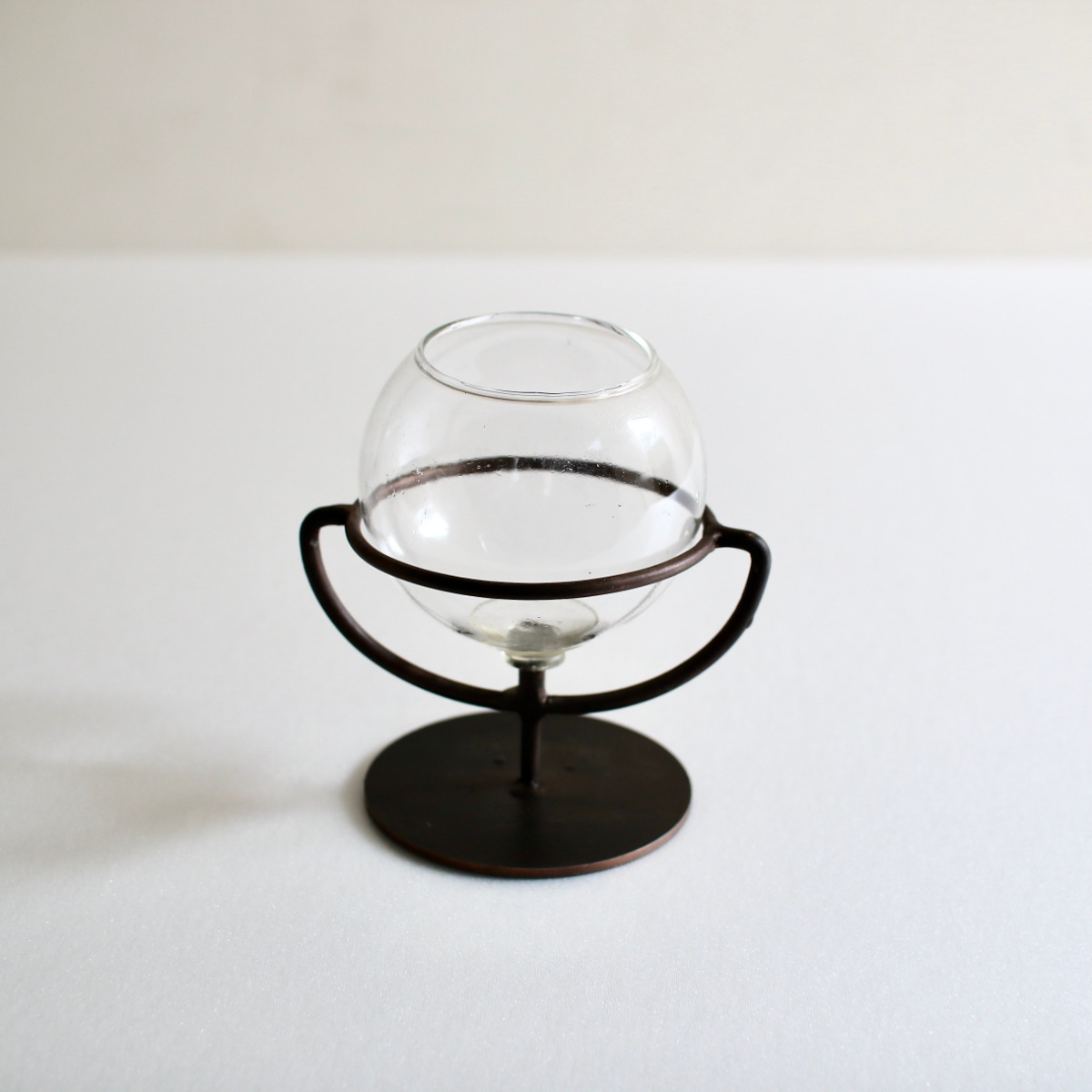 まるで実験のフラスコのように、ガラスが宙に浮いたデザインのフラワーベースです。インテリアにさりげないアクセントをくわえ、シンプルながらも洗練された空間を演出します。ガラス部分はお花を一輪挿すだけで雰囲気が変わり、ドライフラワーやグリーンとの相性も抜群です。