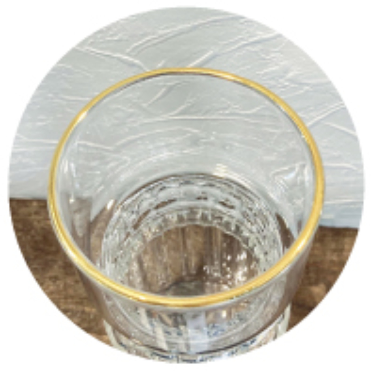 シンプルなガラスベースにゴールドの淵がアクセントになっています。