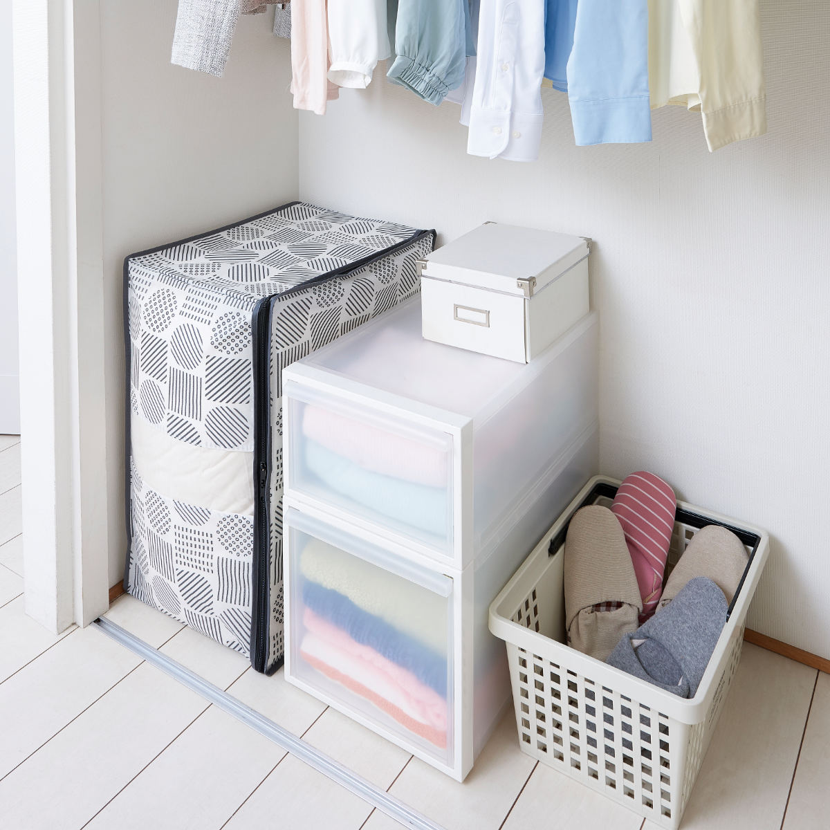 素材は不織布です。軽量で通気性が良く保管用に最適です。普段使用しない来客用の布団収納としても役立ちます。