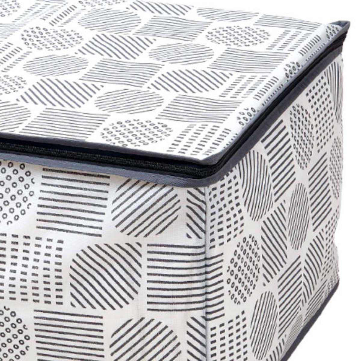 白地に落ち着いたグレーカラーの模様は、インテリアに馴染み生活感をカバーします。お部屋に出しておいても悪目立ちしません。