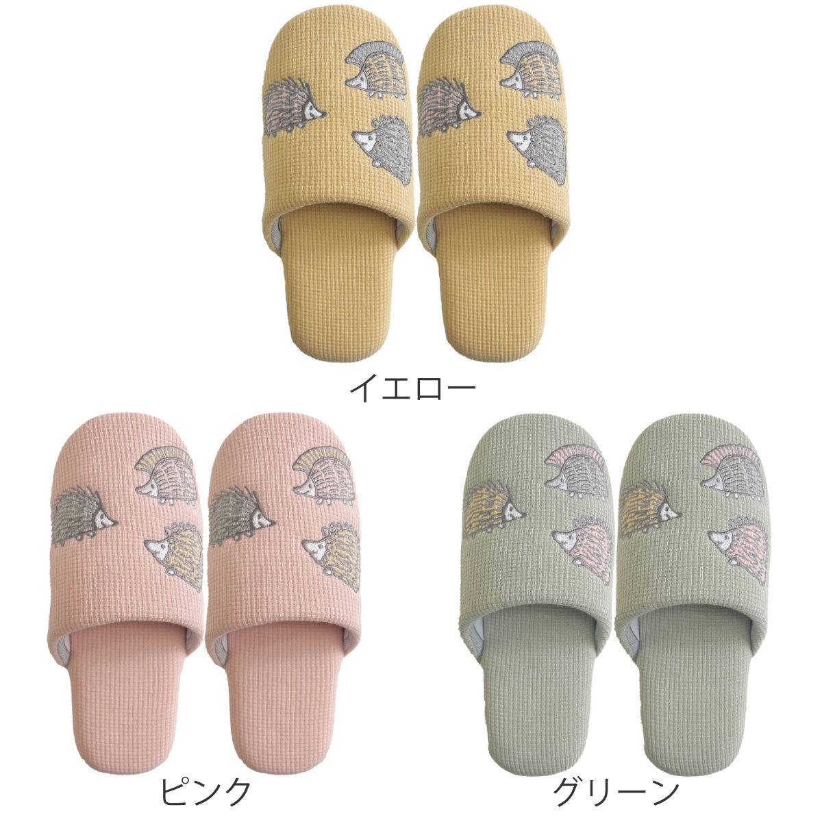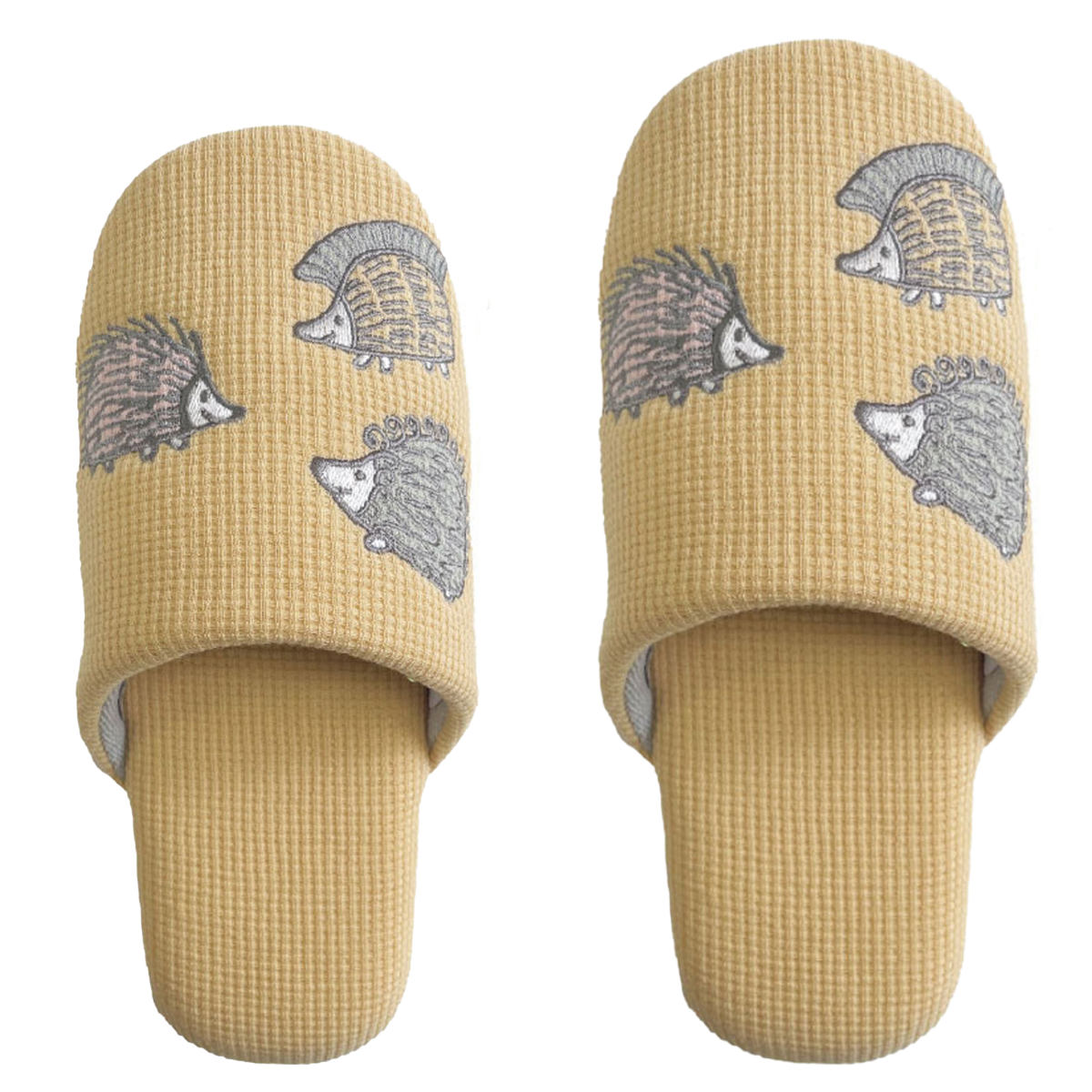●柔らかなアースカラーが映えるはりねずみデザインのスリッパです。