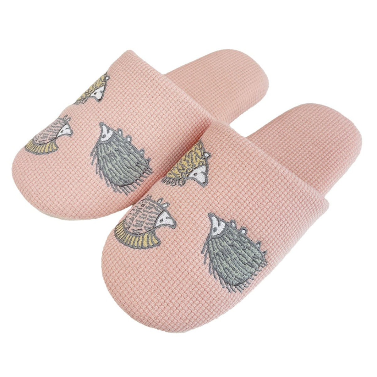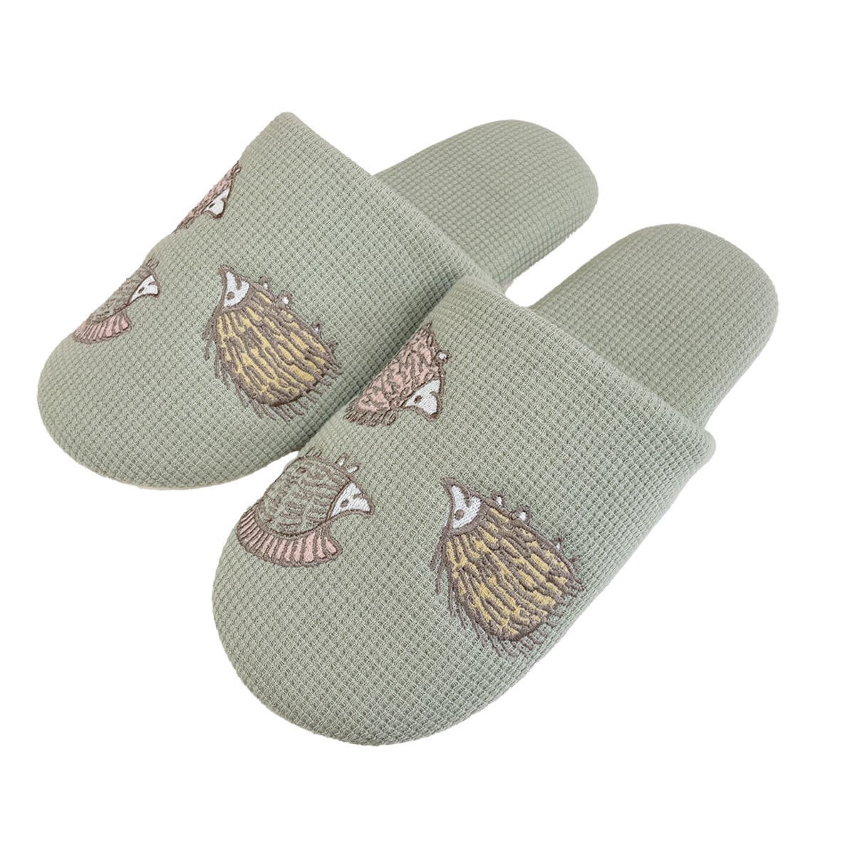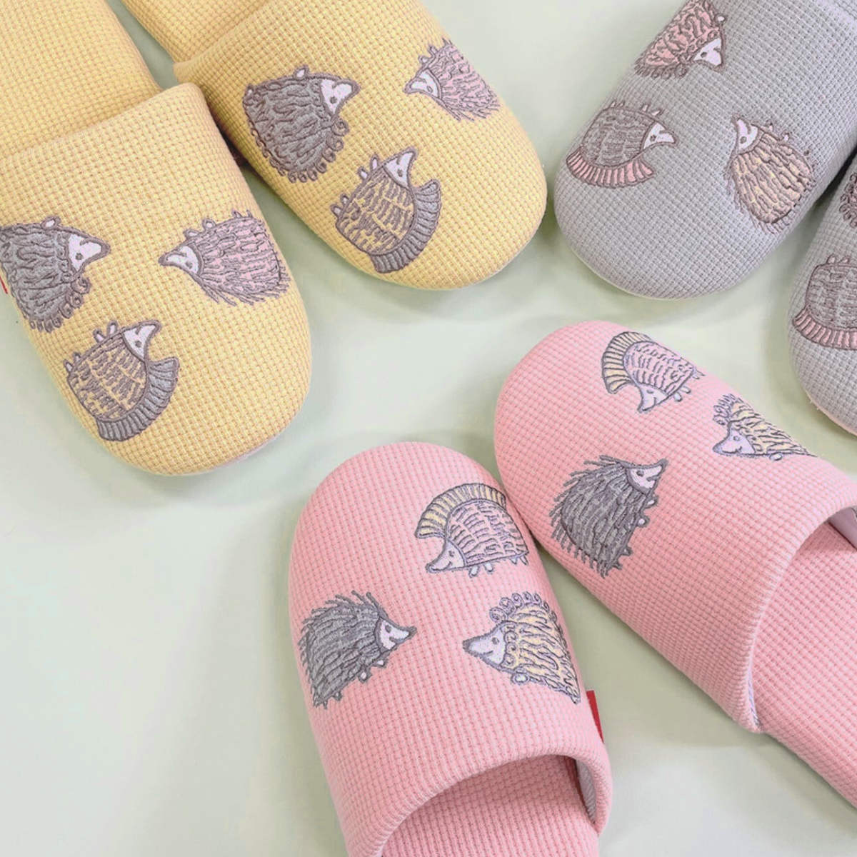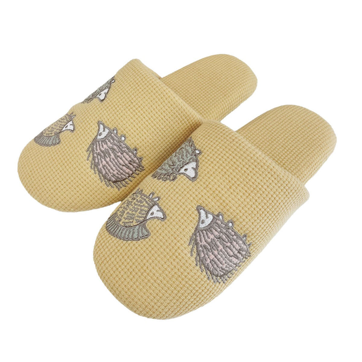 柔らかなアースカラーが映える、はりねずみの刺繍が入ったのスリッパMサイズです。強すぎない色味なので、空間に馴染みながらインテリアのアクセントになります。