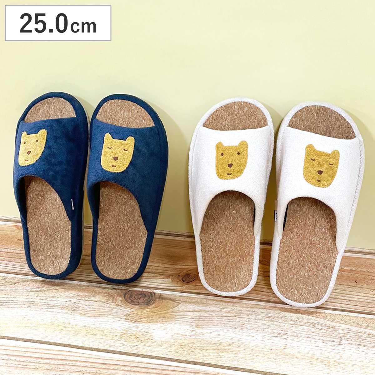 ●手触りの良いパイル生地にクマのアップリケがかわいいコルクスリッパM(約23cm)です。