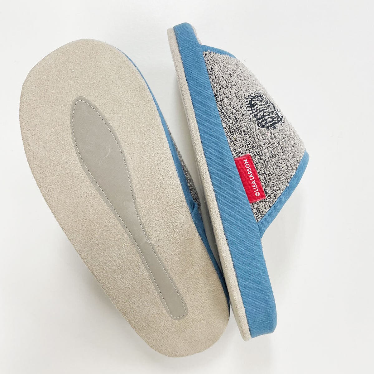 リサ・ラーソンのキャラクター、はりねずみの三兄弟がかわいらしいスリッパLサイズです。全体の素材は麻混の少しゴワゴワした独特のシャリ感のある素材で、足裏を心地よく刺激します。中敷きは高反発な素材を足の形に合わせて凹凸がある立体的な形に仕上げています。底材は静音性に優れたポリスエードです。