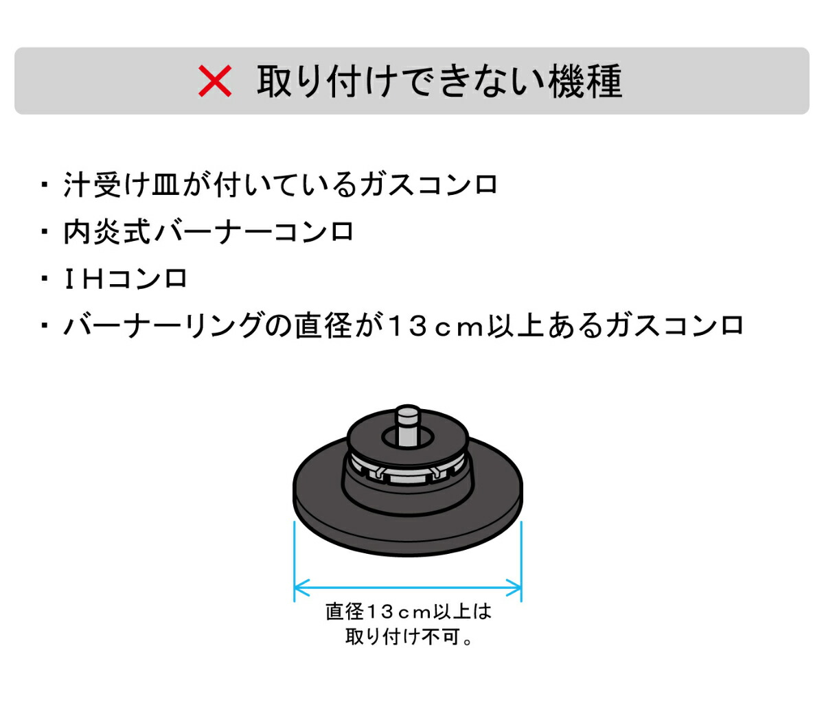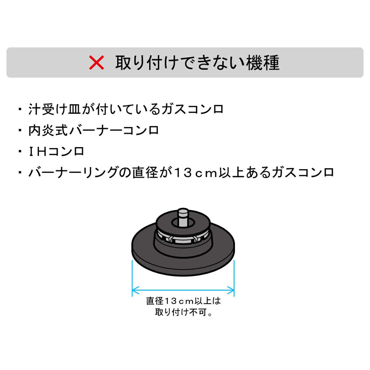 ※直径13cm未満のガスコンロに取り付け可能です