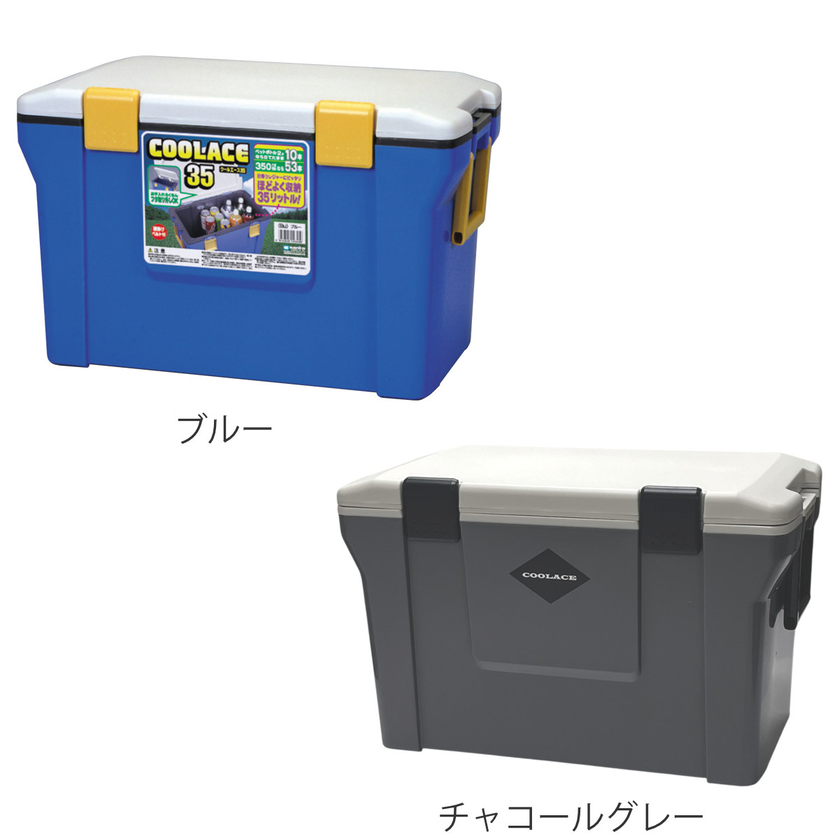 収納力の高い35Lのクーラーボックスです。2Lのペットボトルを立てて収納できます。肩掛けベルト付きで持ち運びに便利です。レジャーやスポーツ、お買い物など、あらゆるシーンで活躍します。