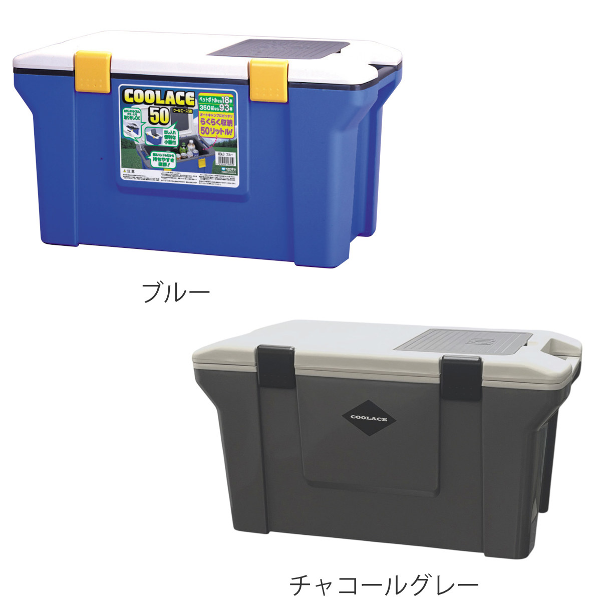 収納力の高い50Lのクーラーボックスです。2Lのペットボトルを立てて収納できます。肩掛けベルト付きで持ち運びに便利です。レジャーやスポーツ、お買い物など、あらゆるシーンで活躍します。