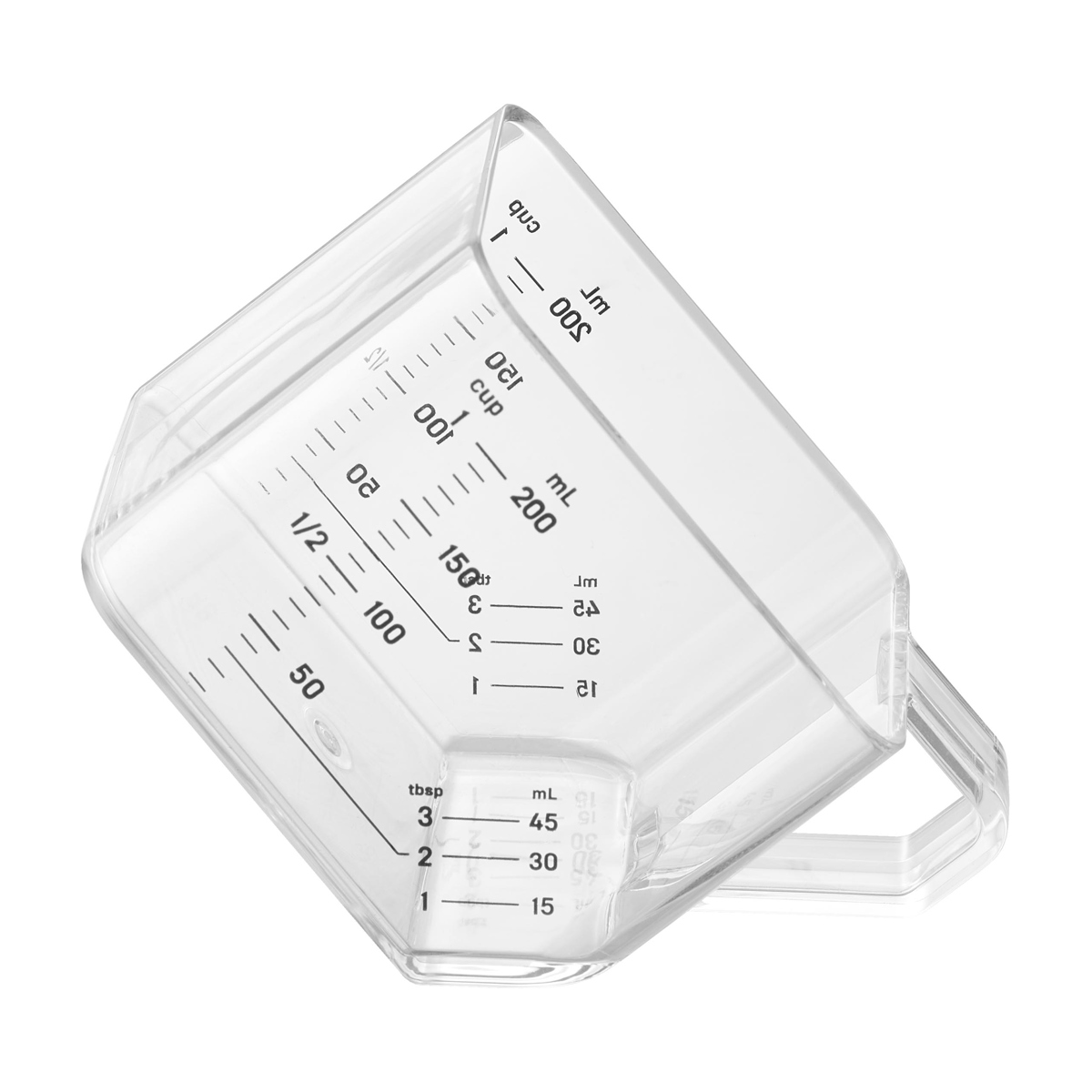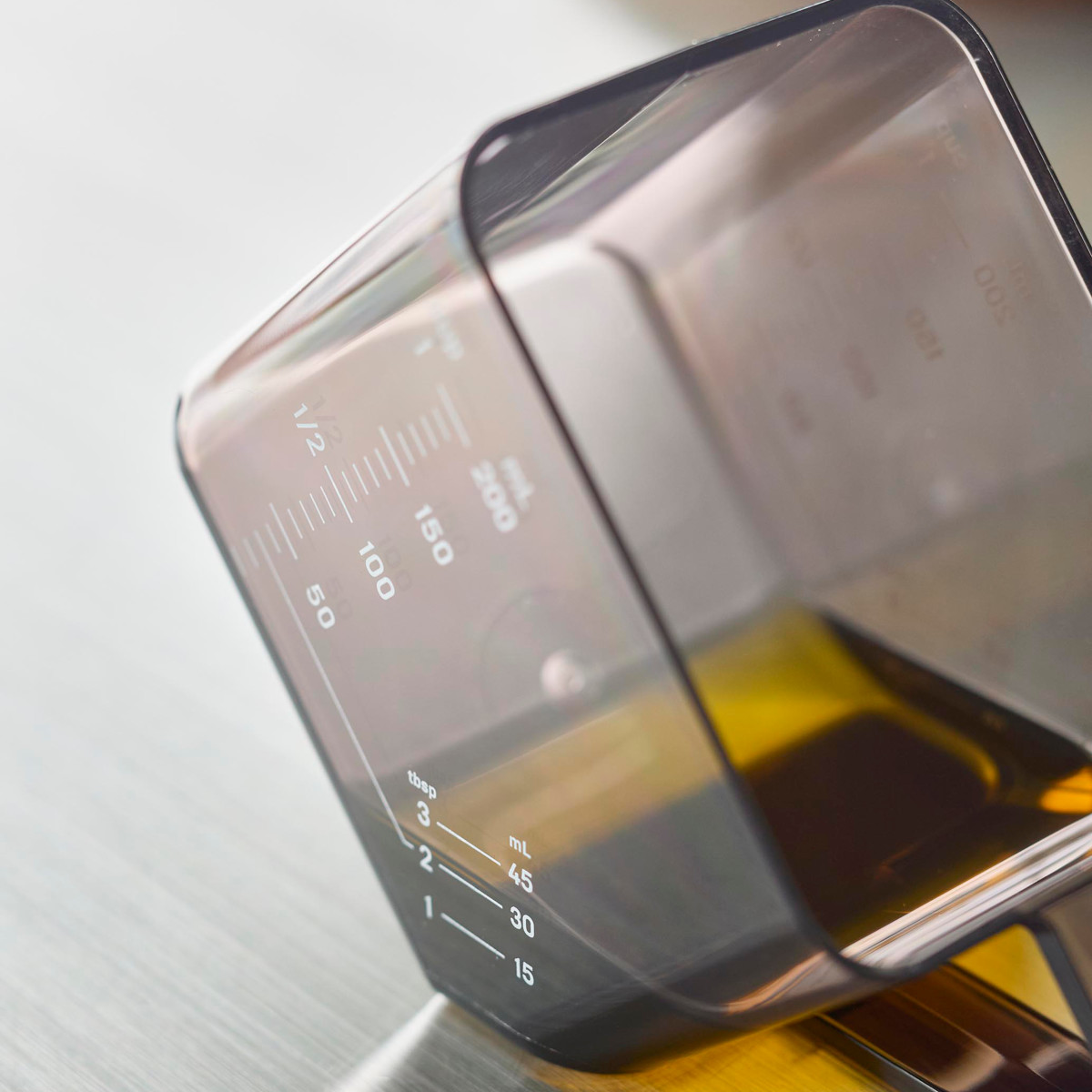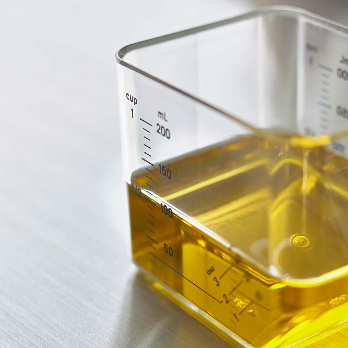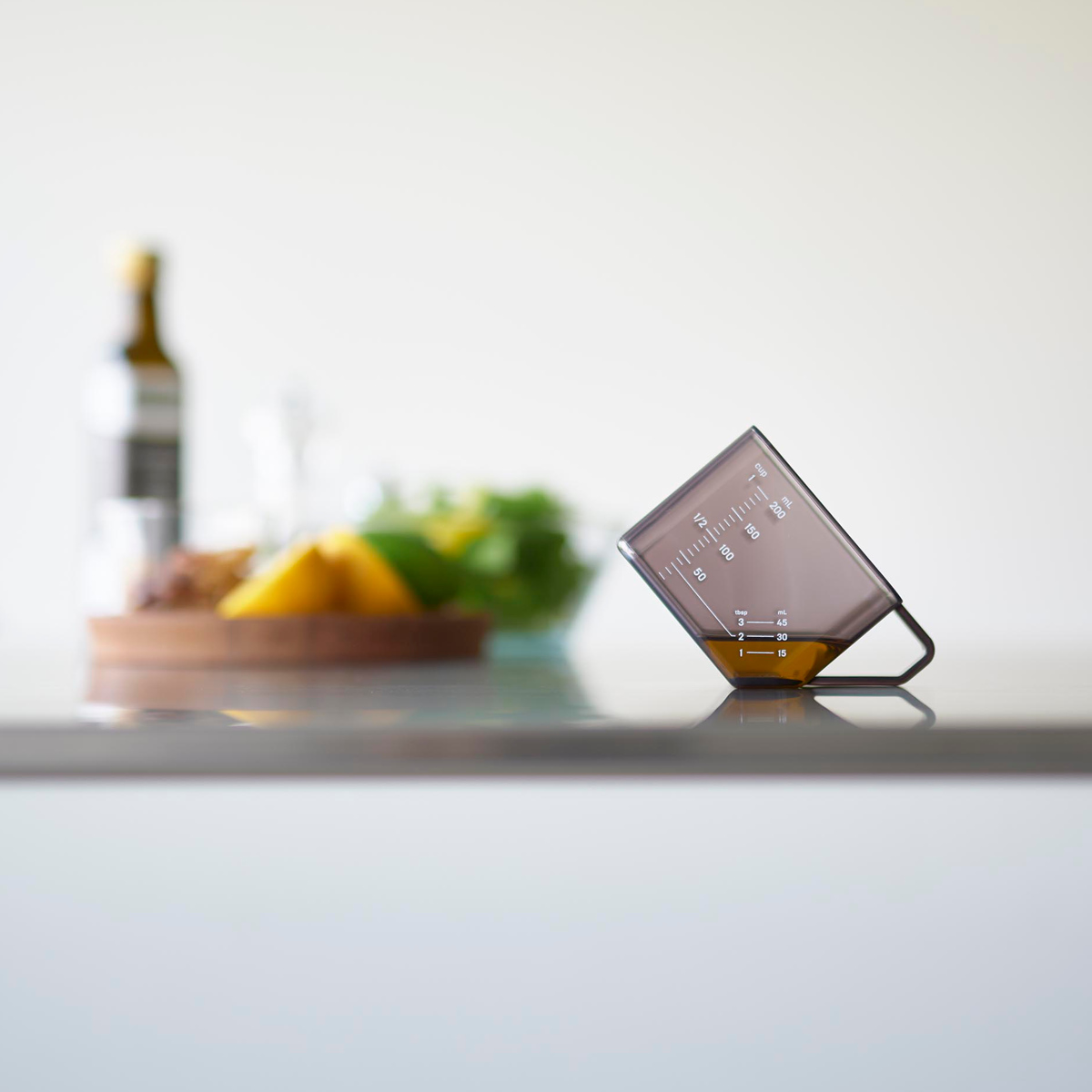 平置きで1カップ、斜め置きで大さじ計量ができる便利な2way計量カップです。片手で持ちやすく注ぎやすい形状なので、自家製ドレッシング作りなどにもおすすめです。