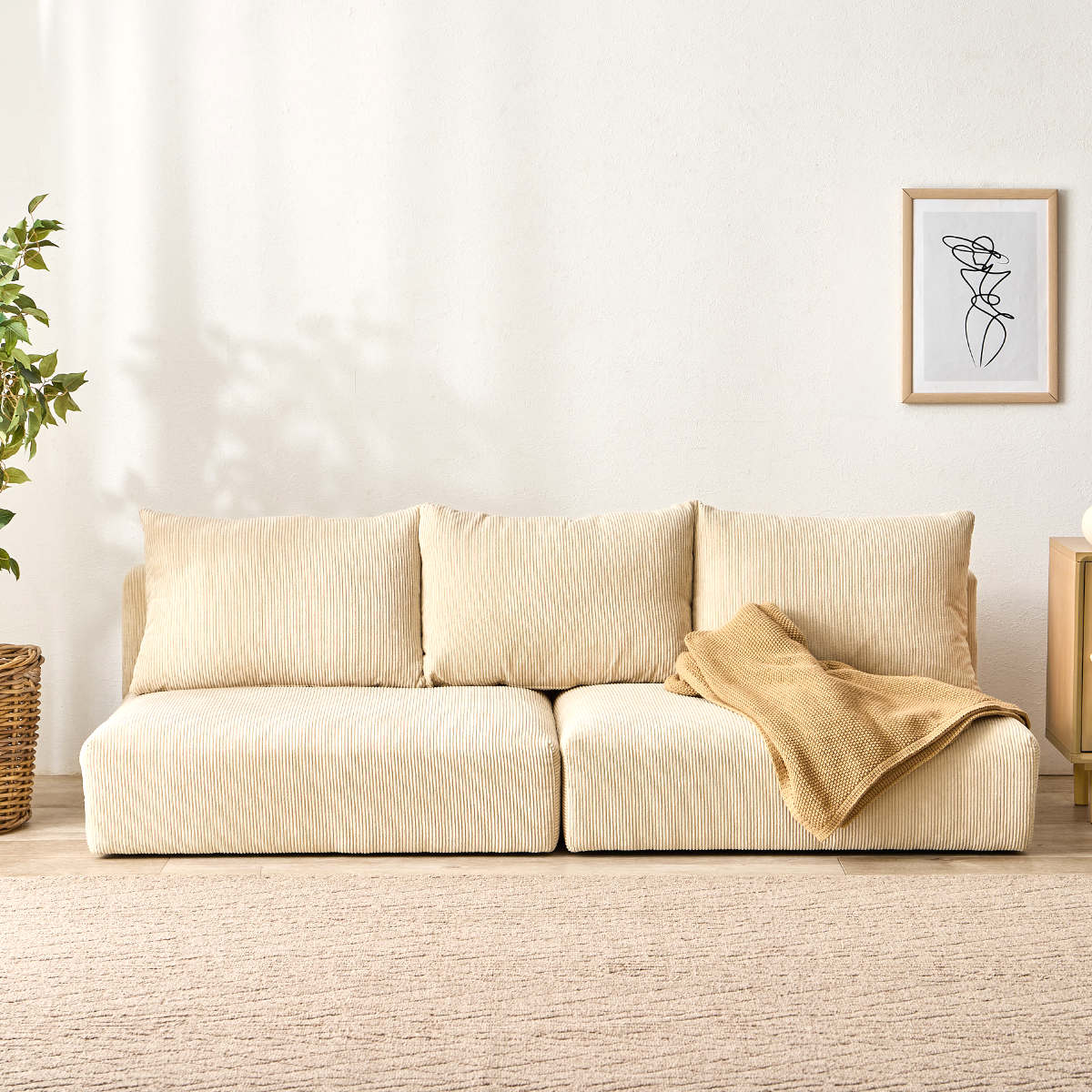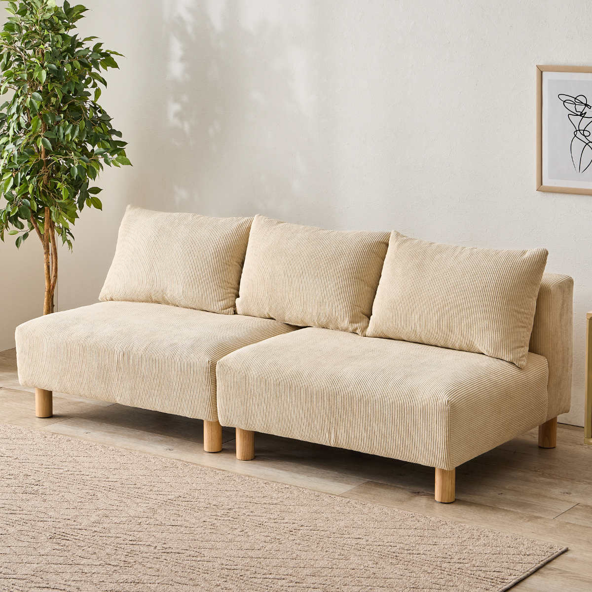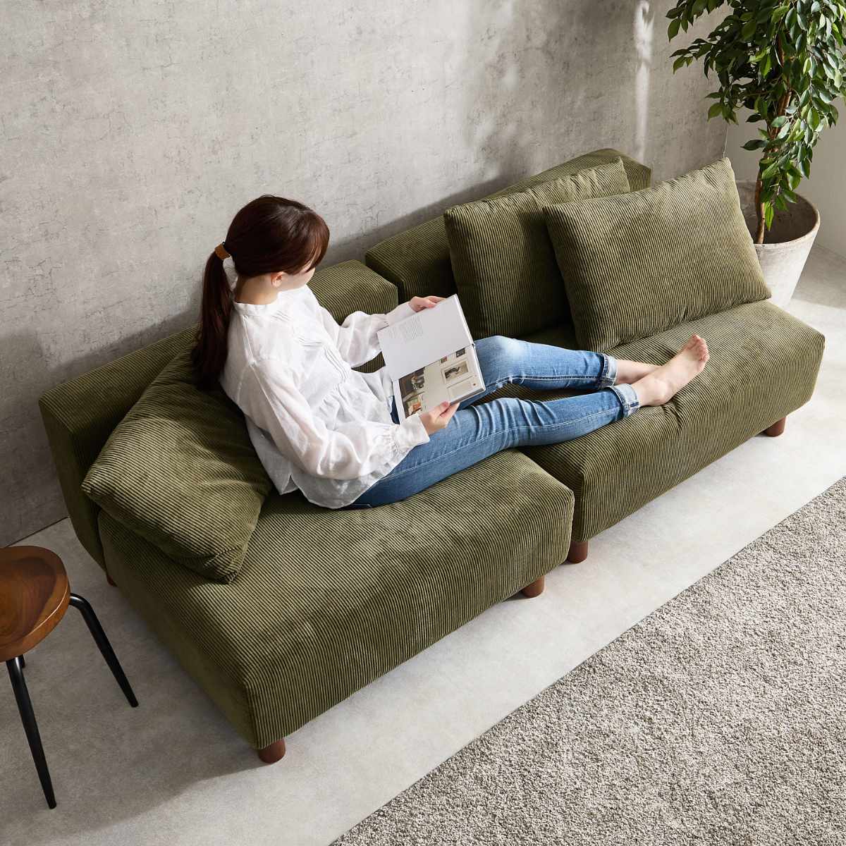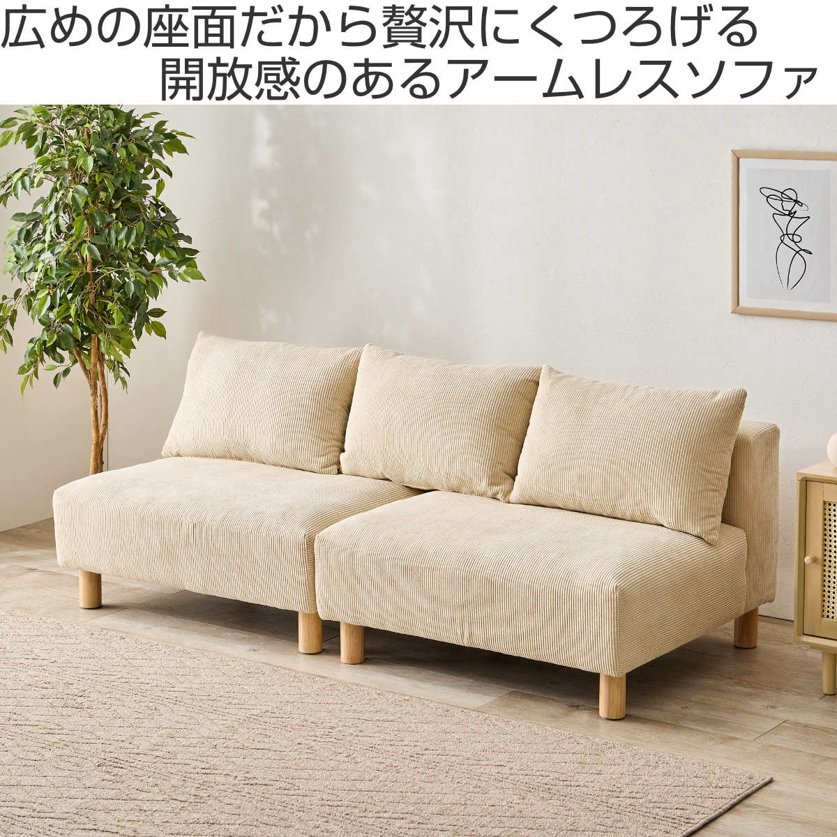 幅180cmのワイドなアームレスソファです。ひじ掛けが無くスッキリとしたデザインで、大人が寝転んでも余裕を持ってくつろぐことができます。読書や映画鑑賞など、自分の時間をゆっくり過ごすのにピッタリなソファです。