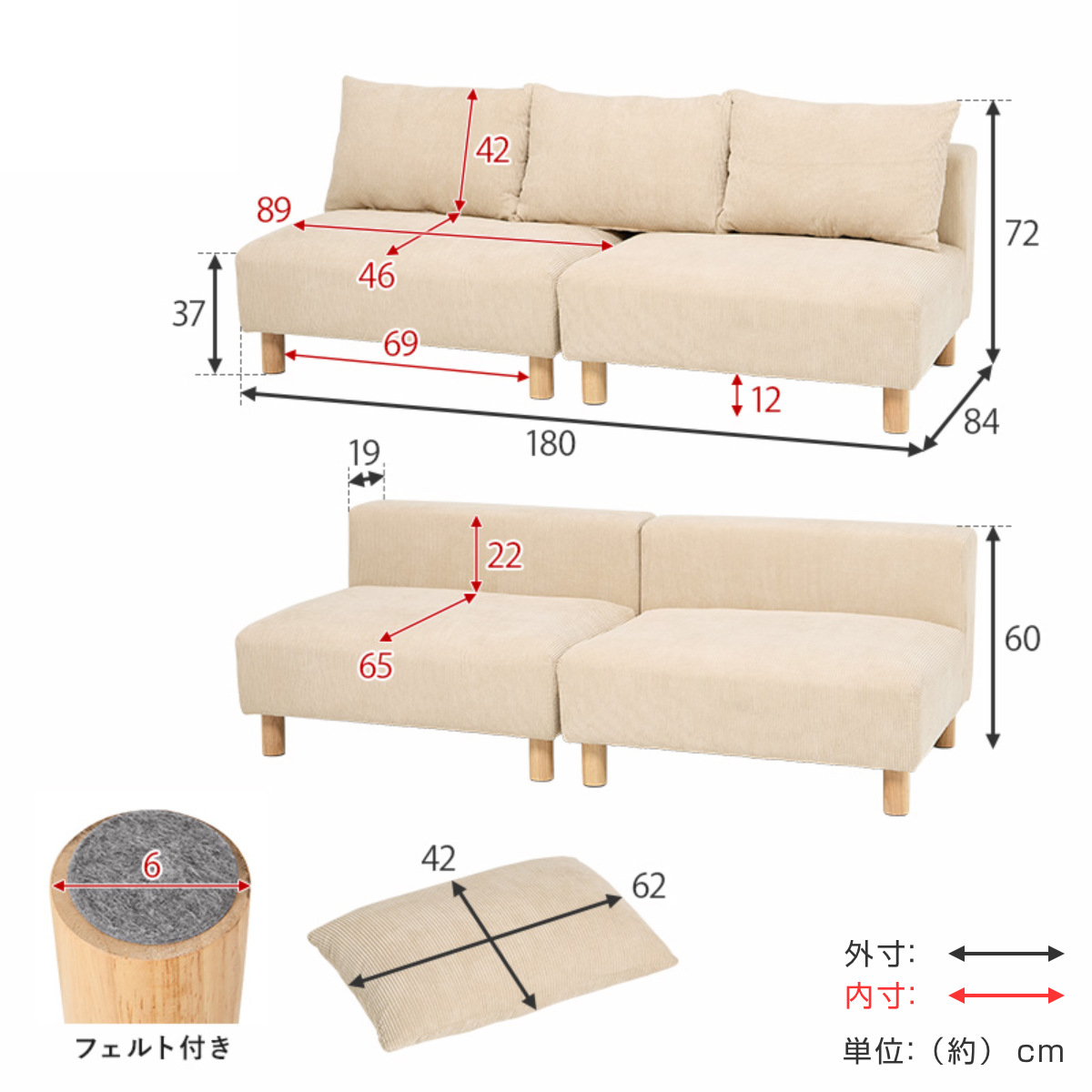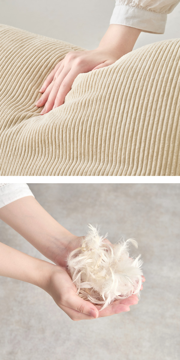 - フレーム・脚:天然木 張地:ポリエステル クッション材:樹脂綿、フェザー