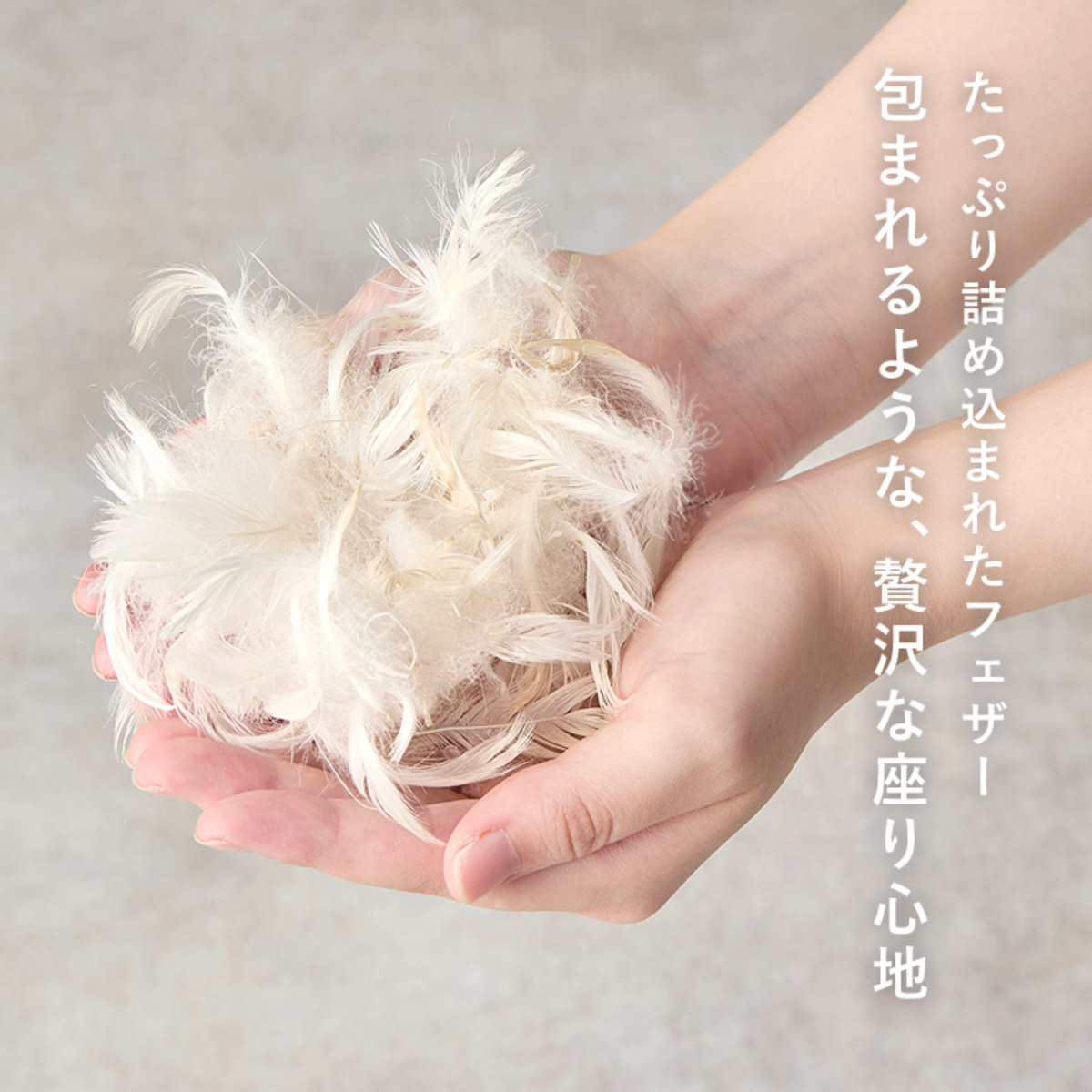優しく身体を包み込むような座り心地が魅力のフェザーソファ。長時間座っても疲れにくく、程よい弾力もあります。