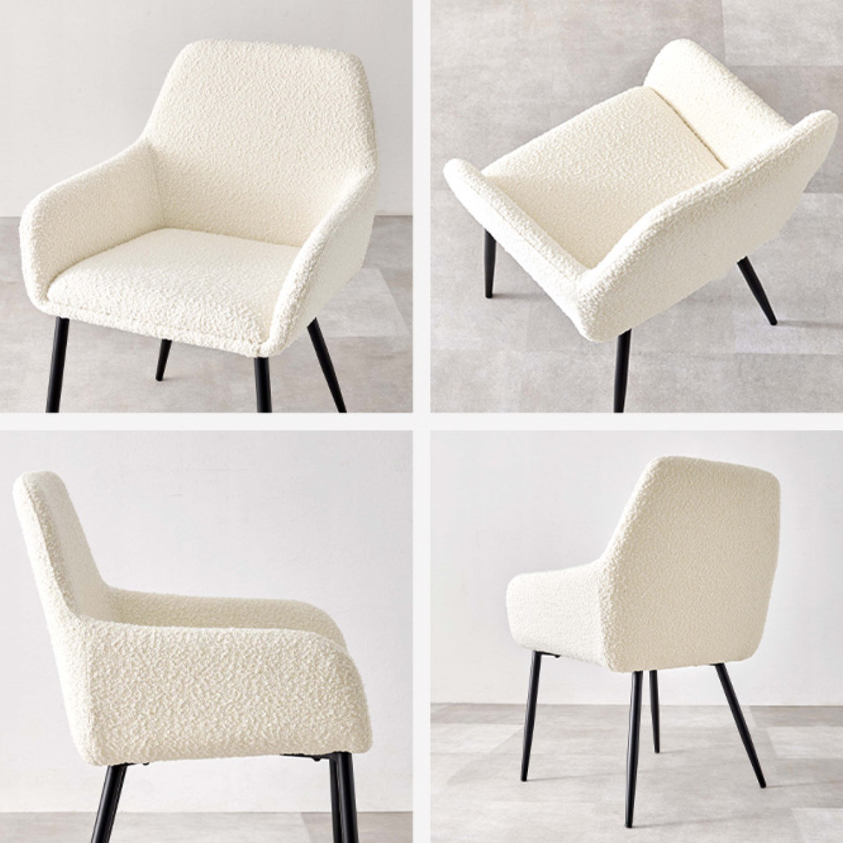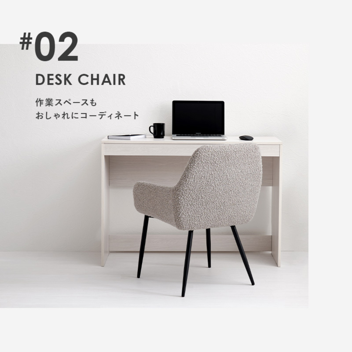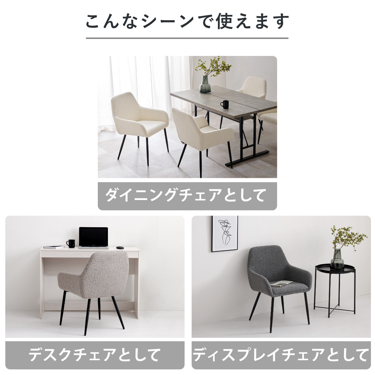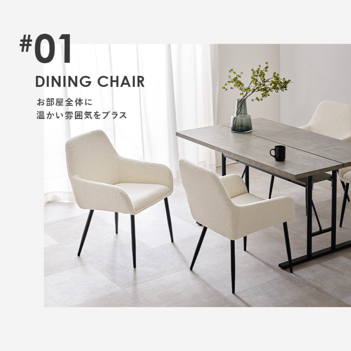 独特な質感のブークレ生地とブラックスチール脚の異素材を組み合わせたダイニングチェアです。モダンな雰囲気の中にも温かみのある空間を演出してくれます。