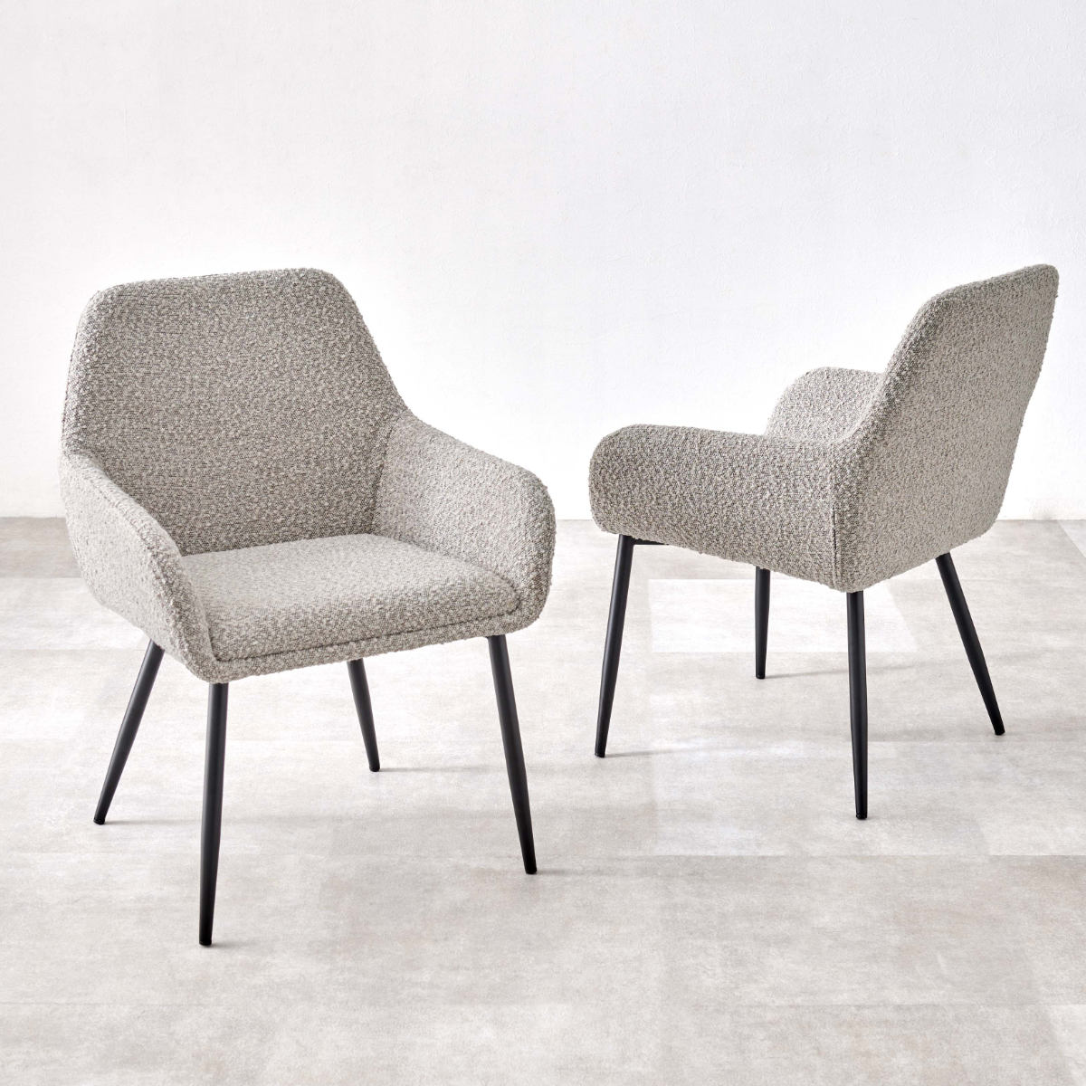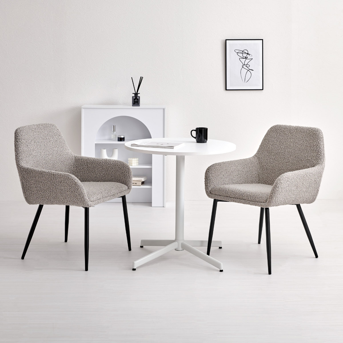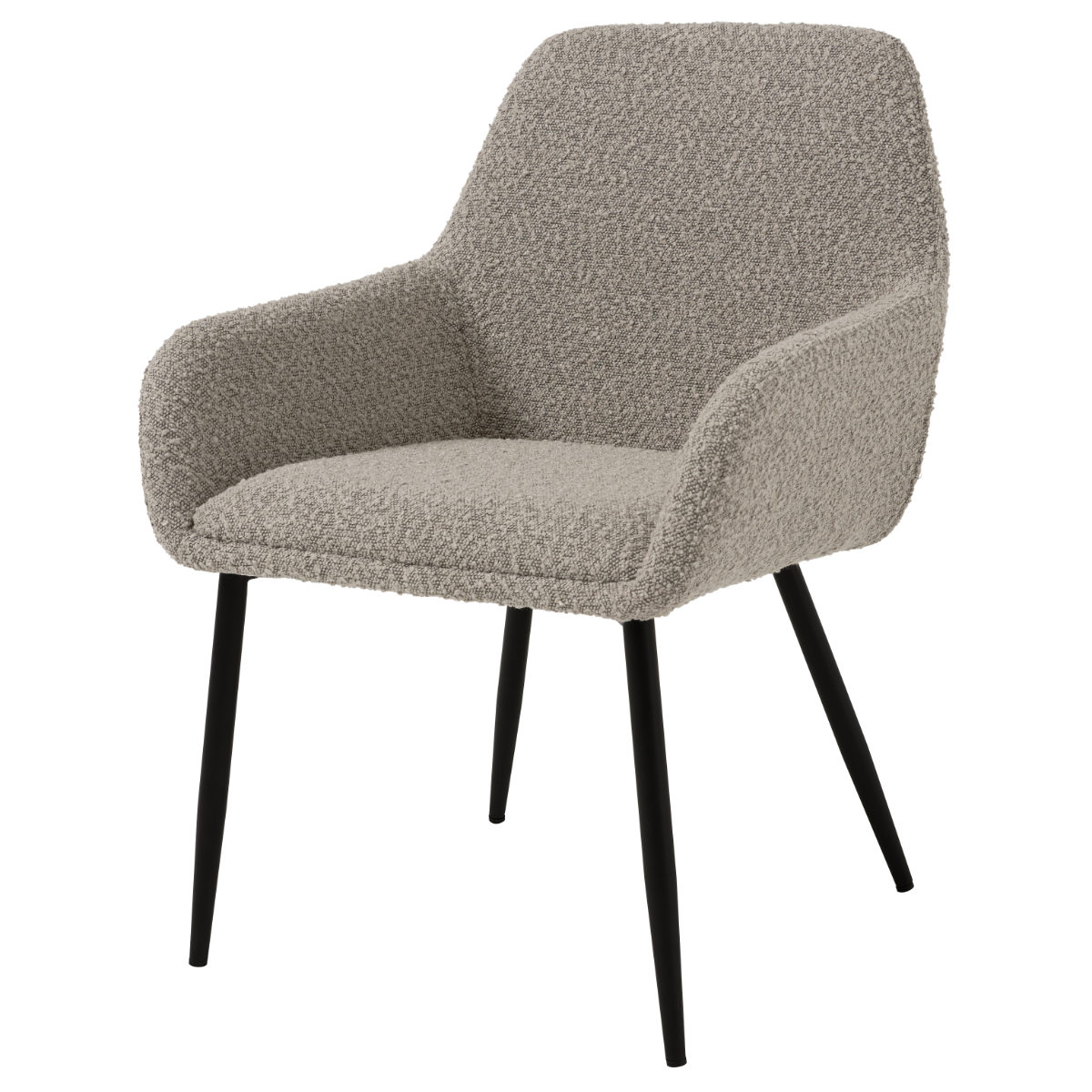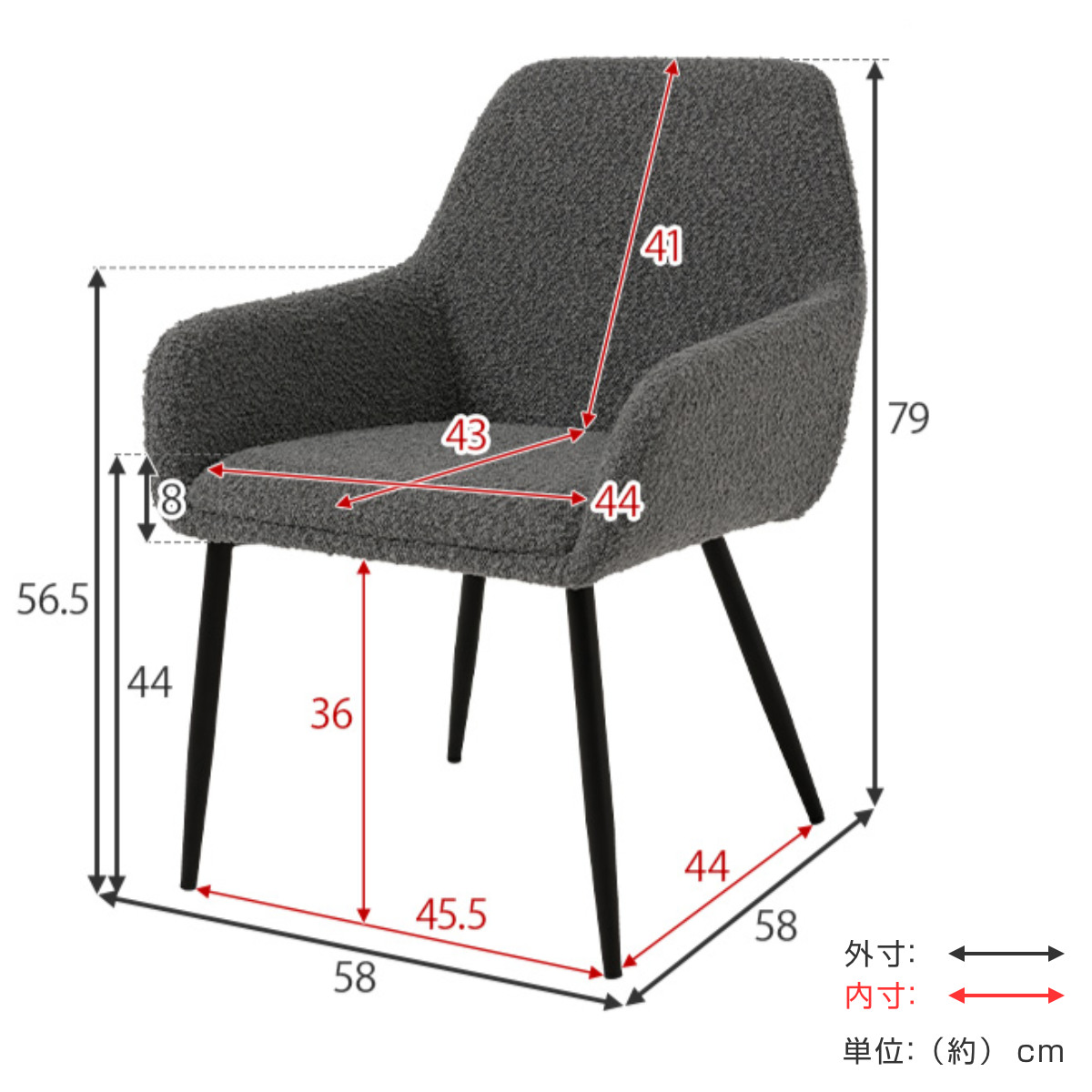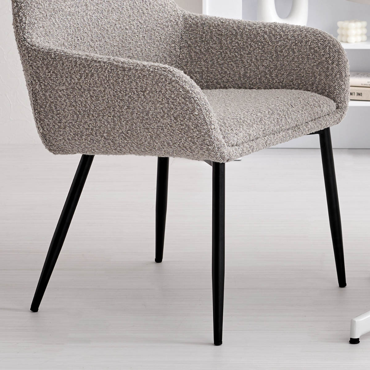 独特な質感のブークレ生地とブラックスチール脚の異素材を組み合わせたダイニングチェアです。モダンな雰囲気の中にも温かみのある空間を演出してくれます。