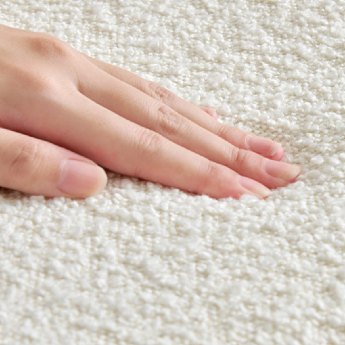 ぽこぽことした質感が特徴のブークレ生地。毛足が短くさらりとした触り心地なので、オールシーズン快適にご使用いただけます。