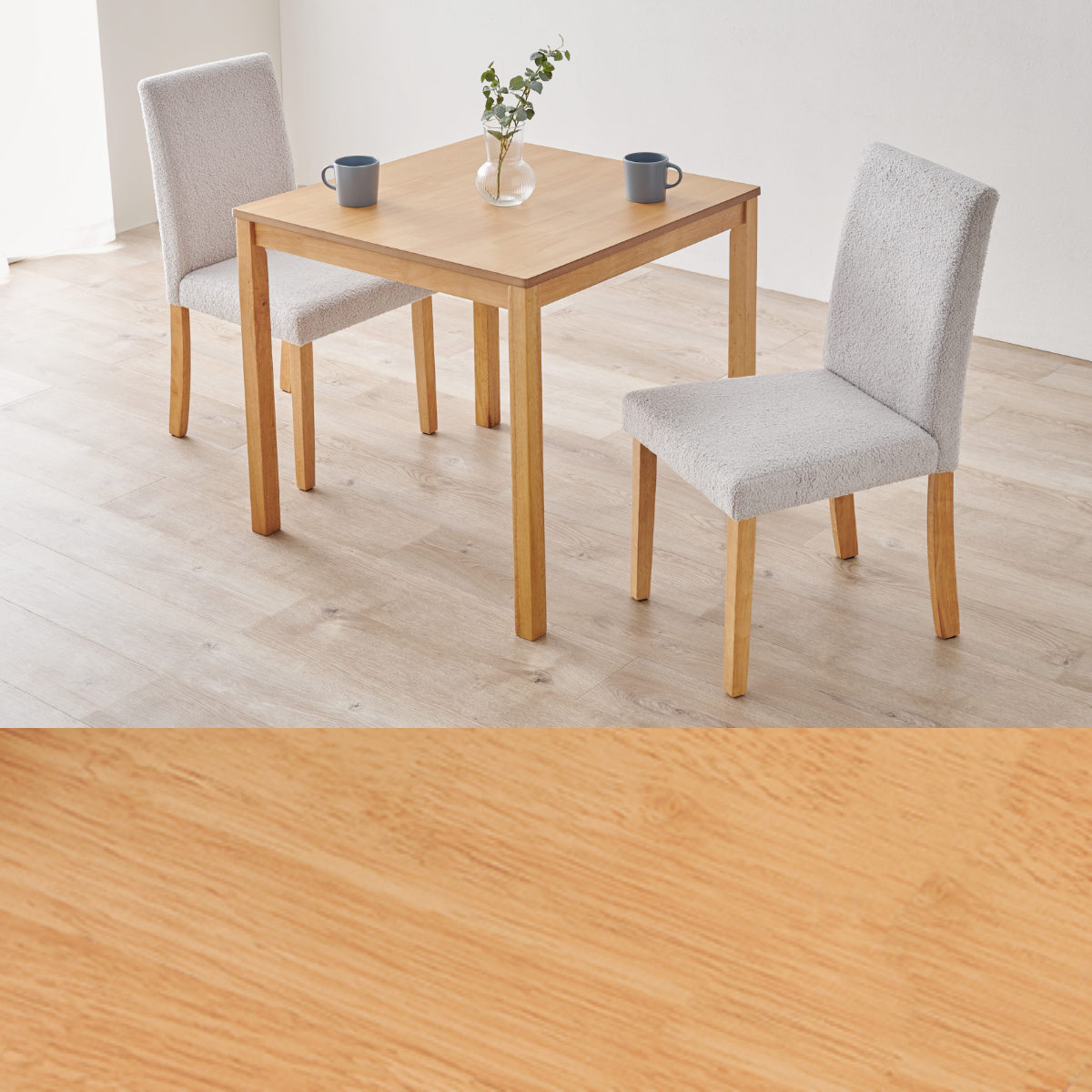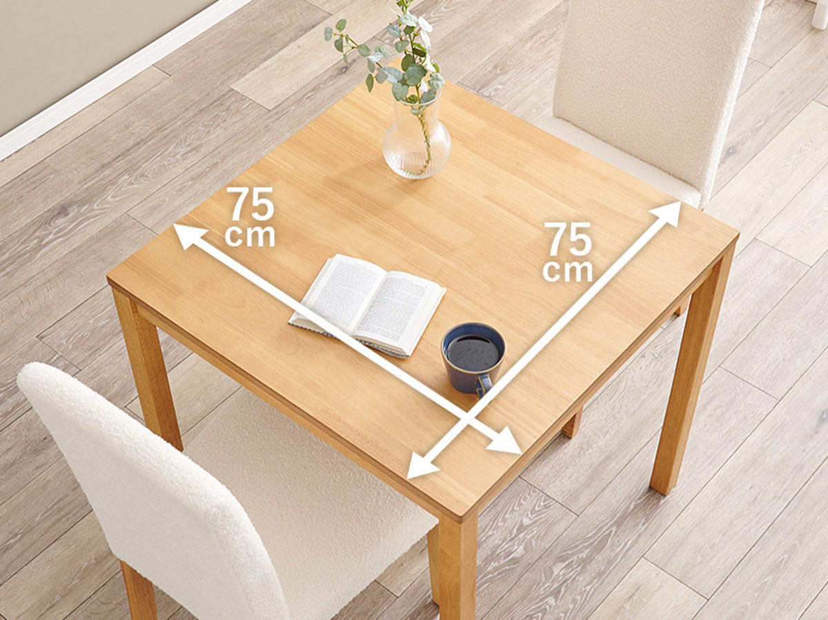 お部屋に圧迫感なく置ける、ナチュラルな雰囲気のダイニングセットです。テーブル幅は約75cmで、リビングやダイニングに設置しやすいコンパクトなサイズ感です。