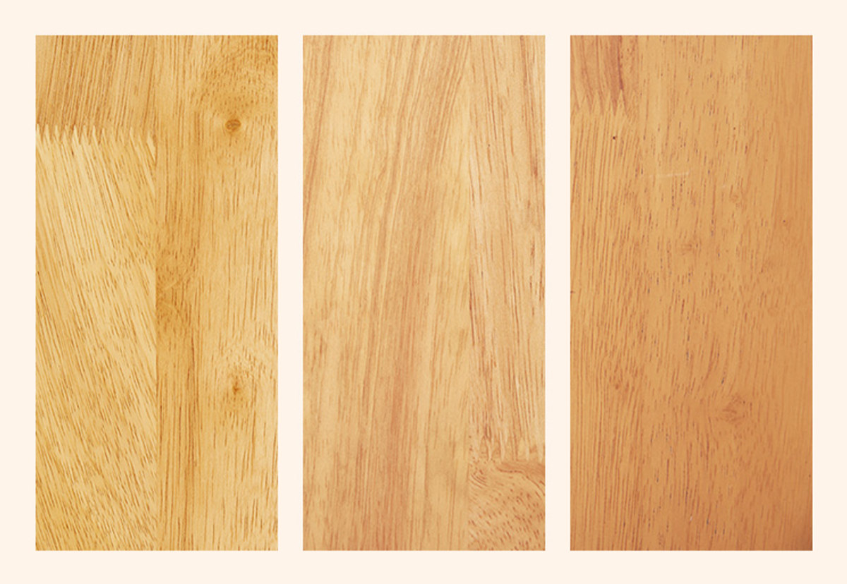 「ナチュラル」のテーブルには、使うほどに深みがでるラバーウッドの突板を使用しています。やわらかな木目と明るい色合いが、温もりのある空間を演出します。