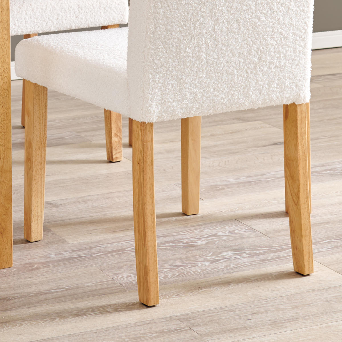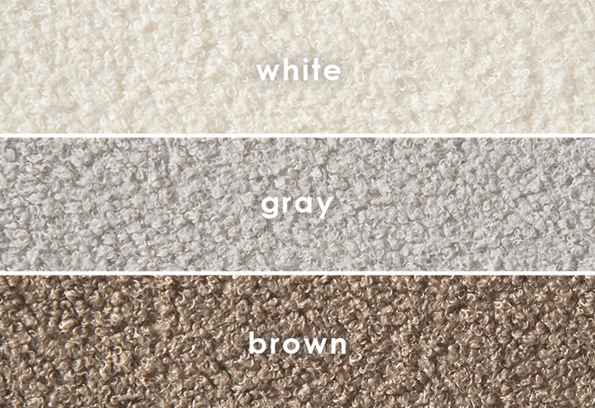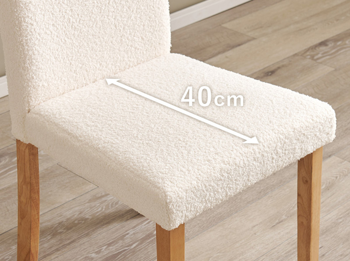チェアの張地には、もこもことした立体感のあるブークレ生地を使用しています。冷えやすい季節も心地よくお使いいただけます。