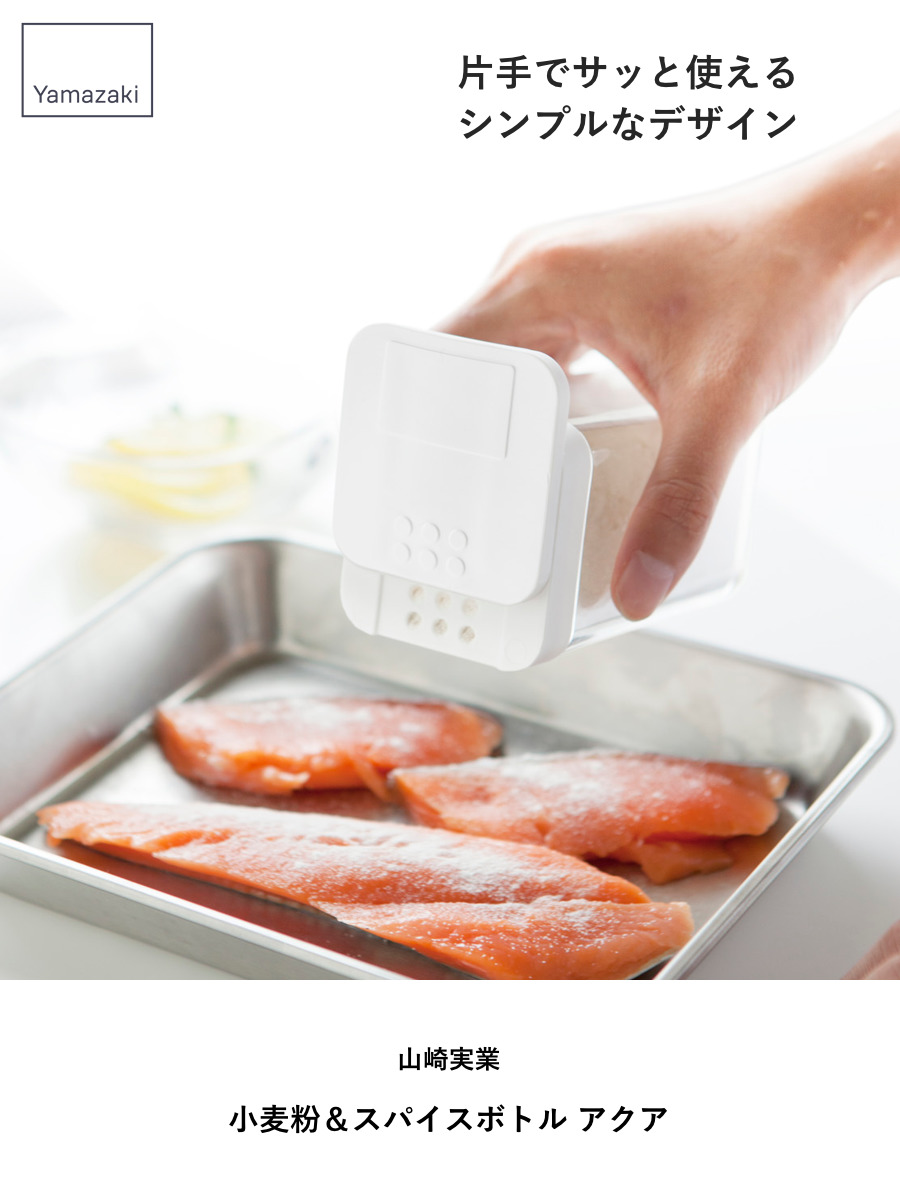 開け口の大きさが大・小あります。大きい口は粒が大きなスパイスや岩塩、小さい口は小麦粉や片栗粉におすすめです。少しずつ振りかけて使えるのでダマになりにくく、シチューのとろみ付けや揚げ物の衣付けに便利です。