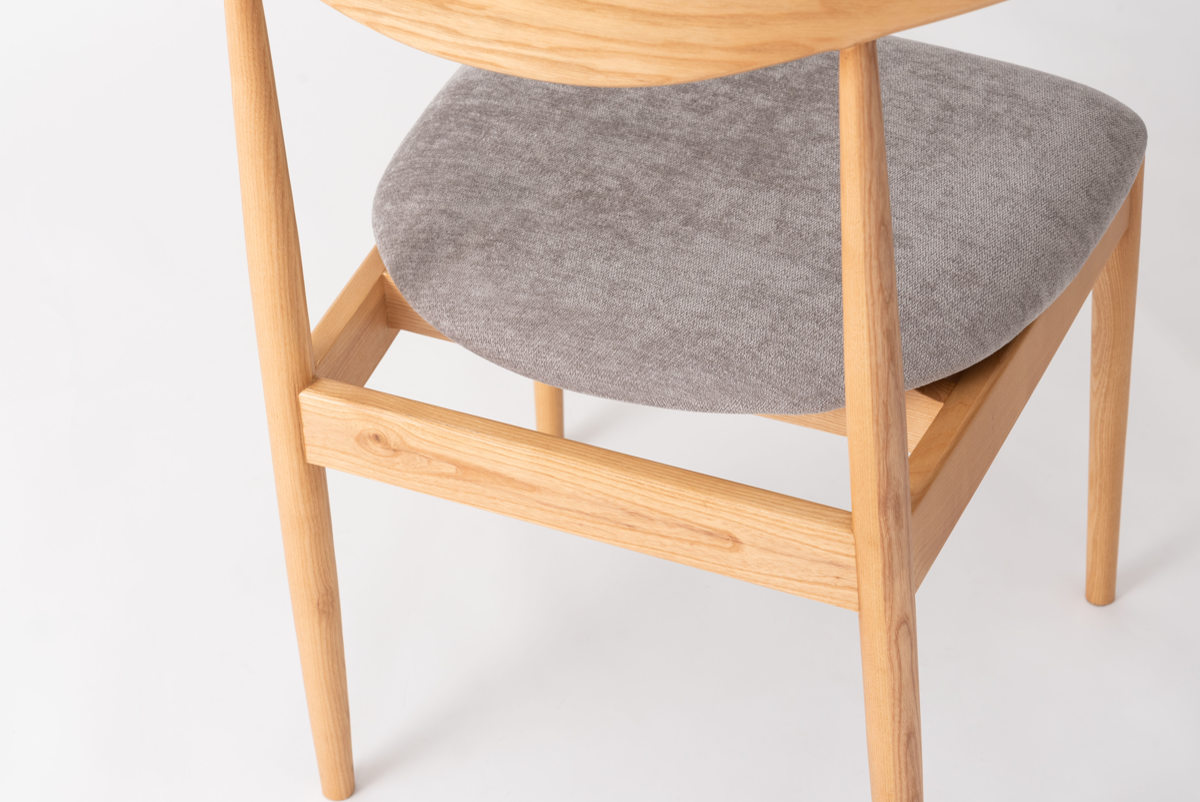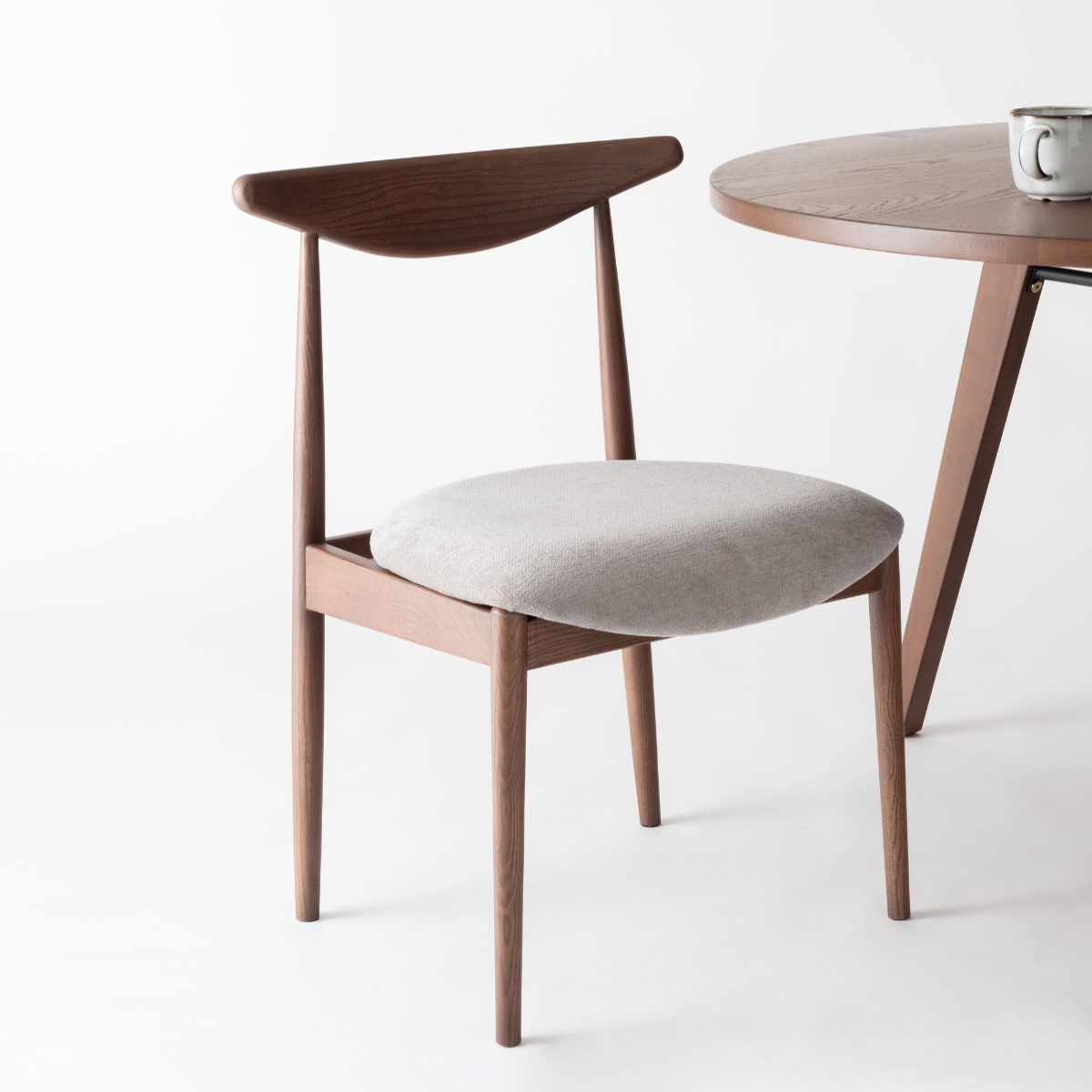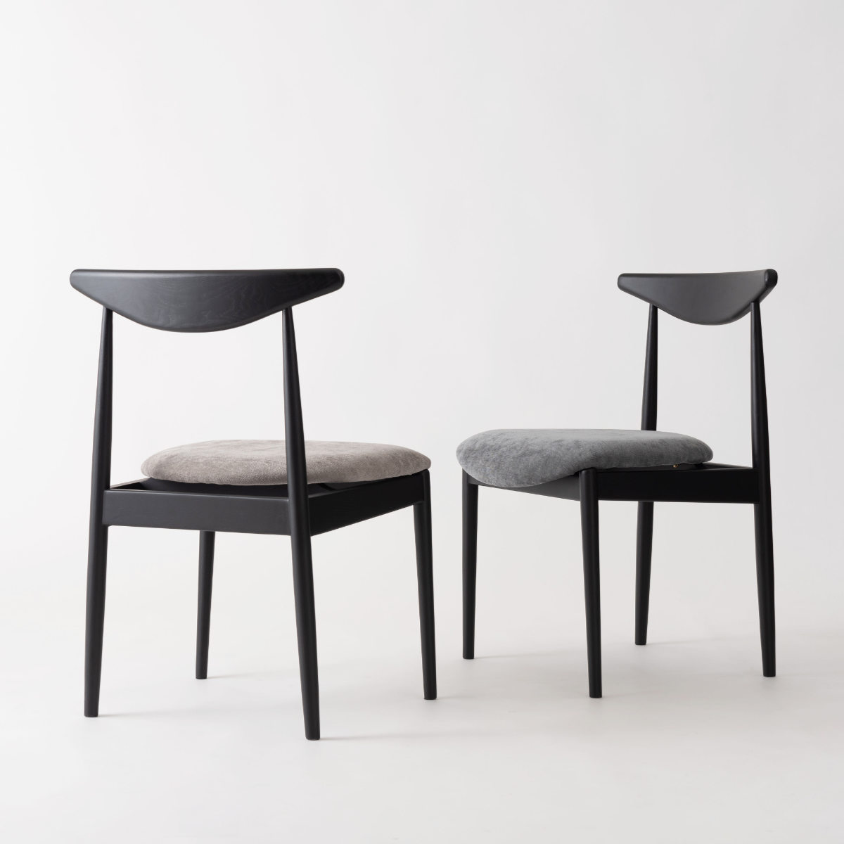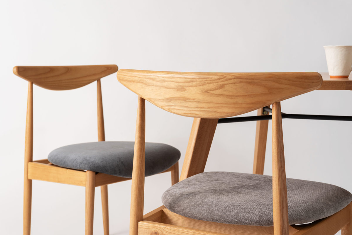 前垂れの座面が立体感を与える、アート作品のようなダイニングチェア