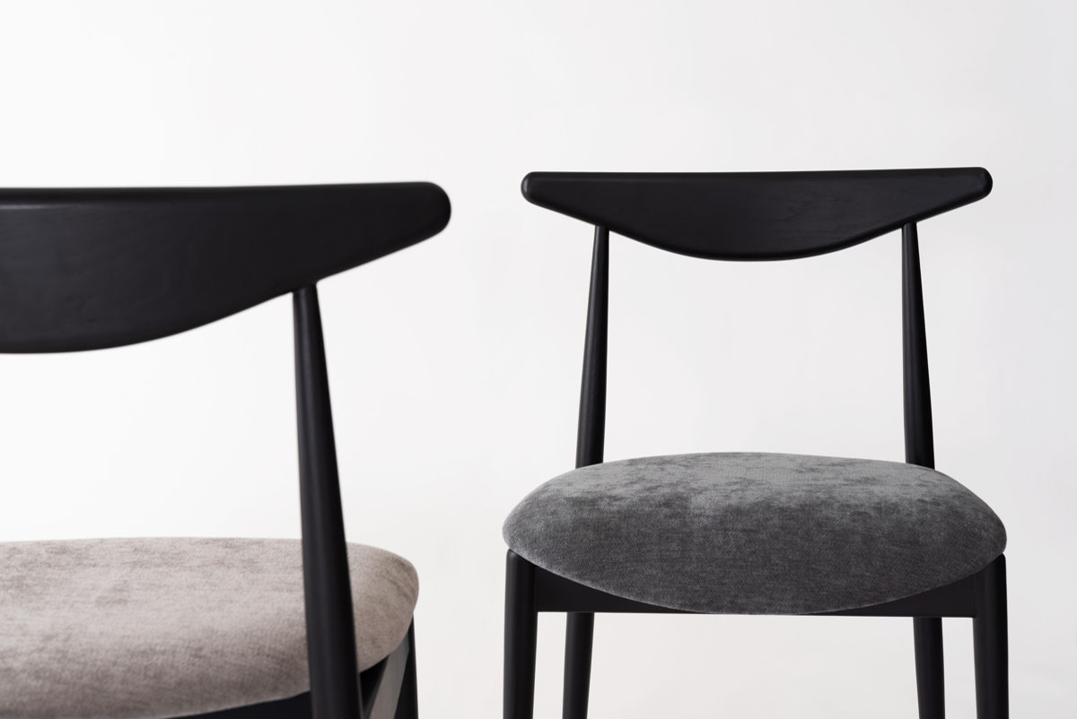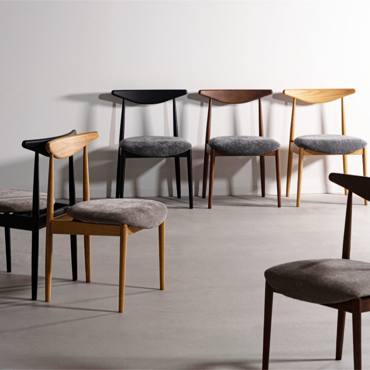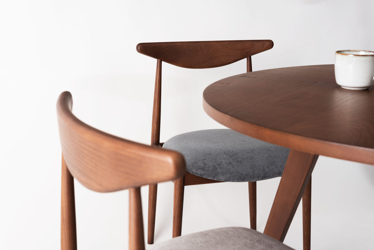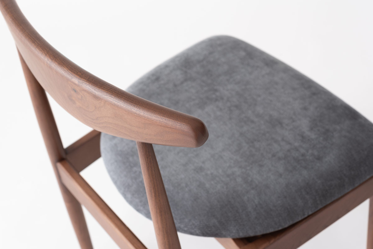 前垂れの座面が立体感を与える、アート作品のようなダイニングチェア