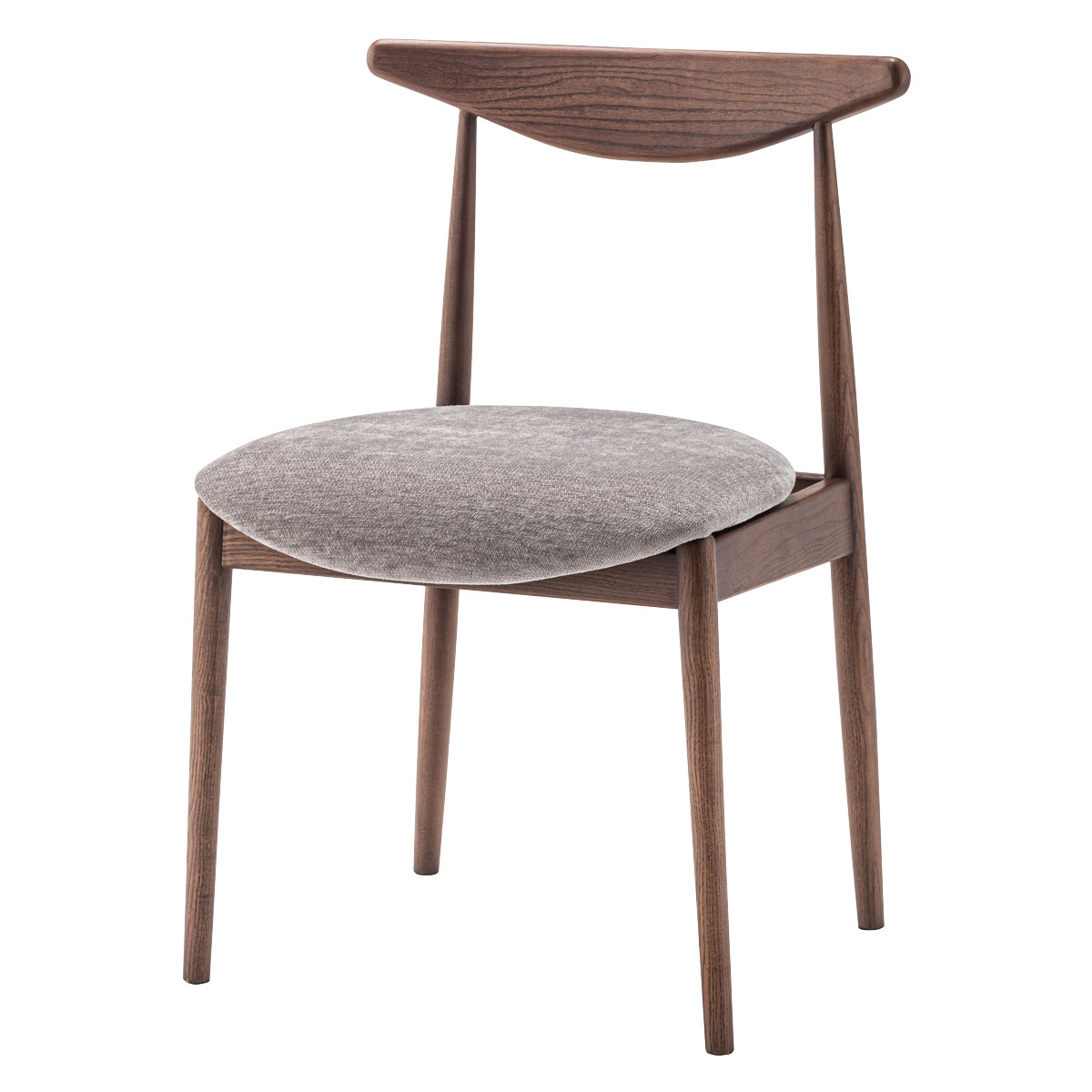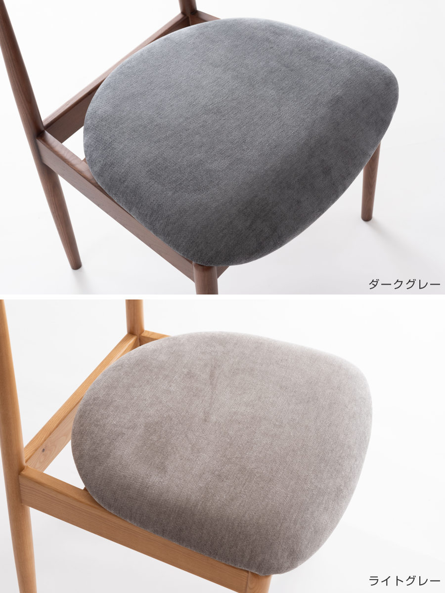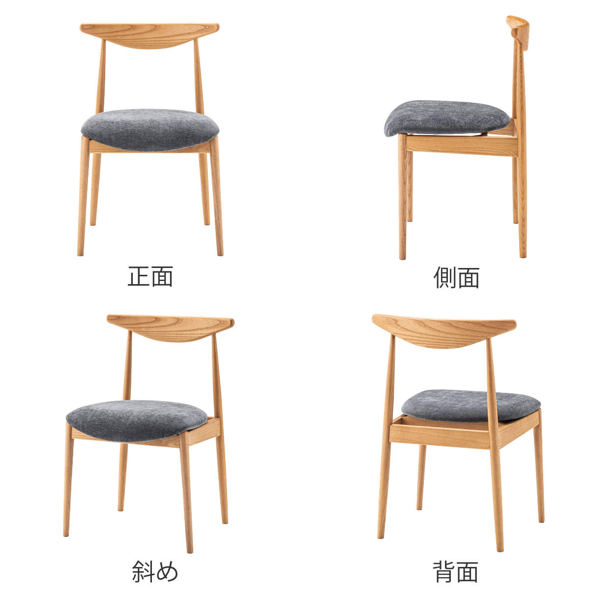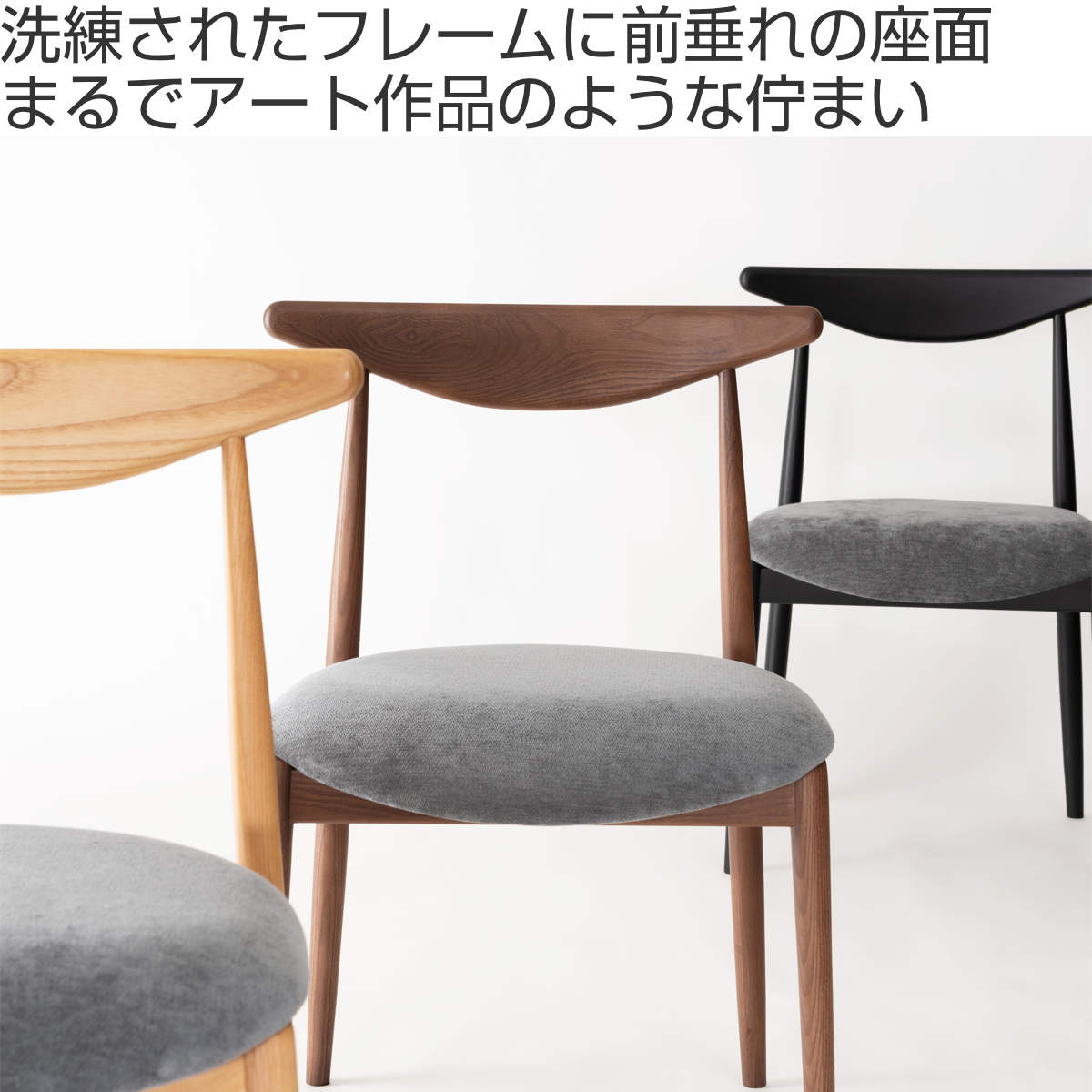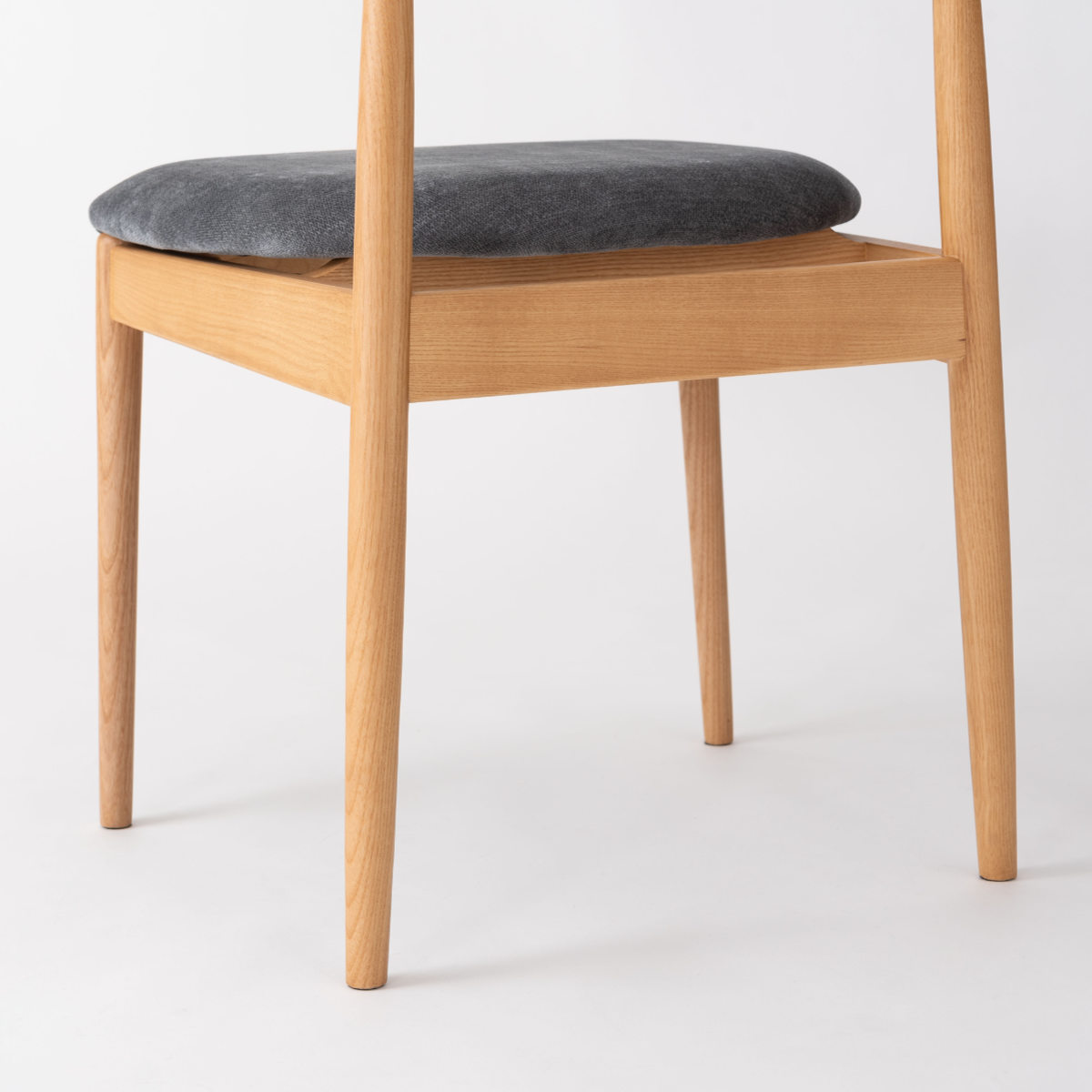 前垂れの座面が印象的なダイニングチェアです。 シンプルなフレームデザインに奥行きと立体感を与え、まるでアート作品のようなイメージです。 天然木アッシュ材の表情を活かしつつ、洗練されたしなやかな曲線のフレームは高級感を演出します。