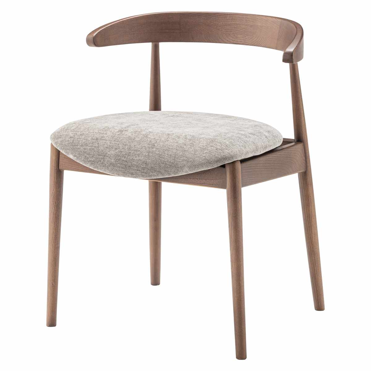 背面の曲線が美しいダイニングチェアです。背もたれが丸みのあるデザインなので、モダンな印象ながらも優しい雰囲気を感じさせます。前面に垂れた座面も特徴的で、シンプルなフォルムにアクセントを添えています。
