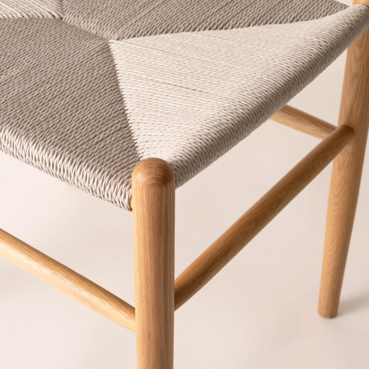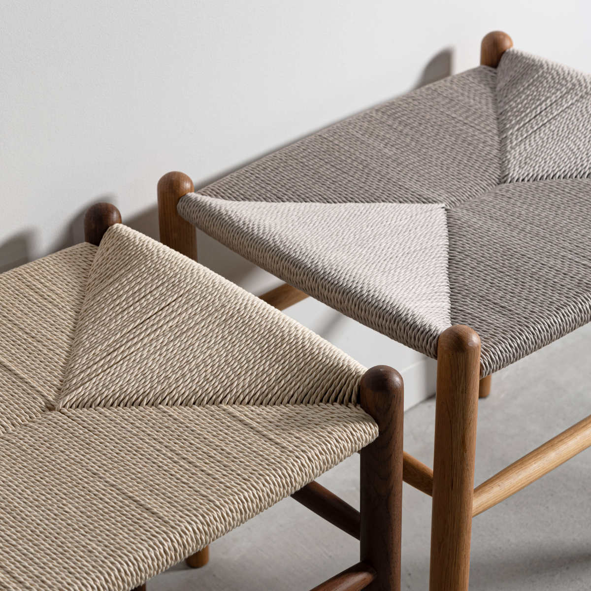 高い耐久性、優れた通気性、快適な座り心地、軽さを兼ね備えたペーパーコードを封筒編みした美しい座面のスツールです。ペーパーコードは、使い続けるほどに身体に馴染み、自分のチェアへと変化していきます。封筒編みは、座面の中心が緩やかに凹んでいるため、ゆったりとした座り心地が特徴です。