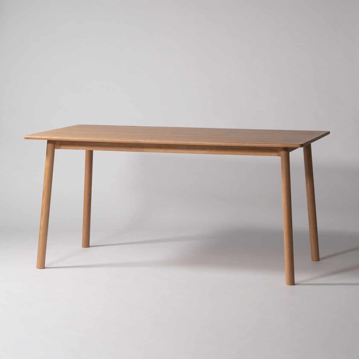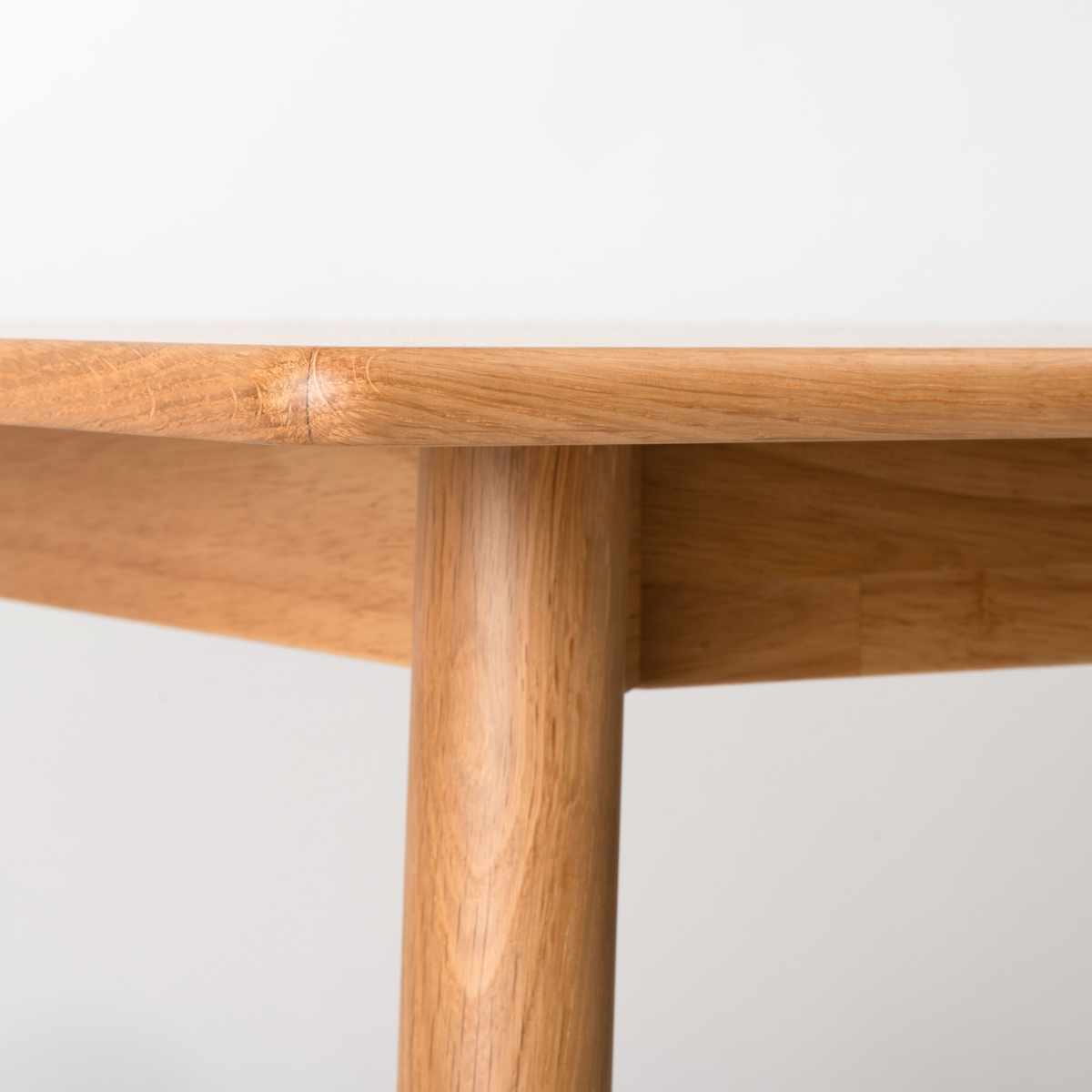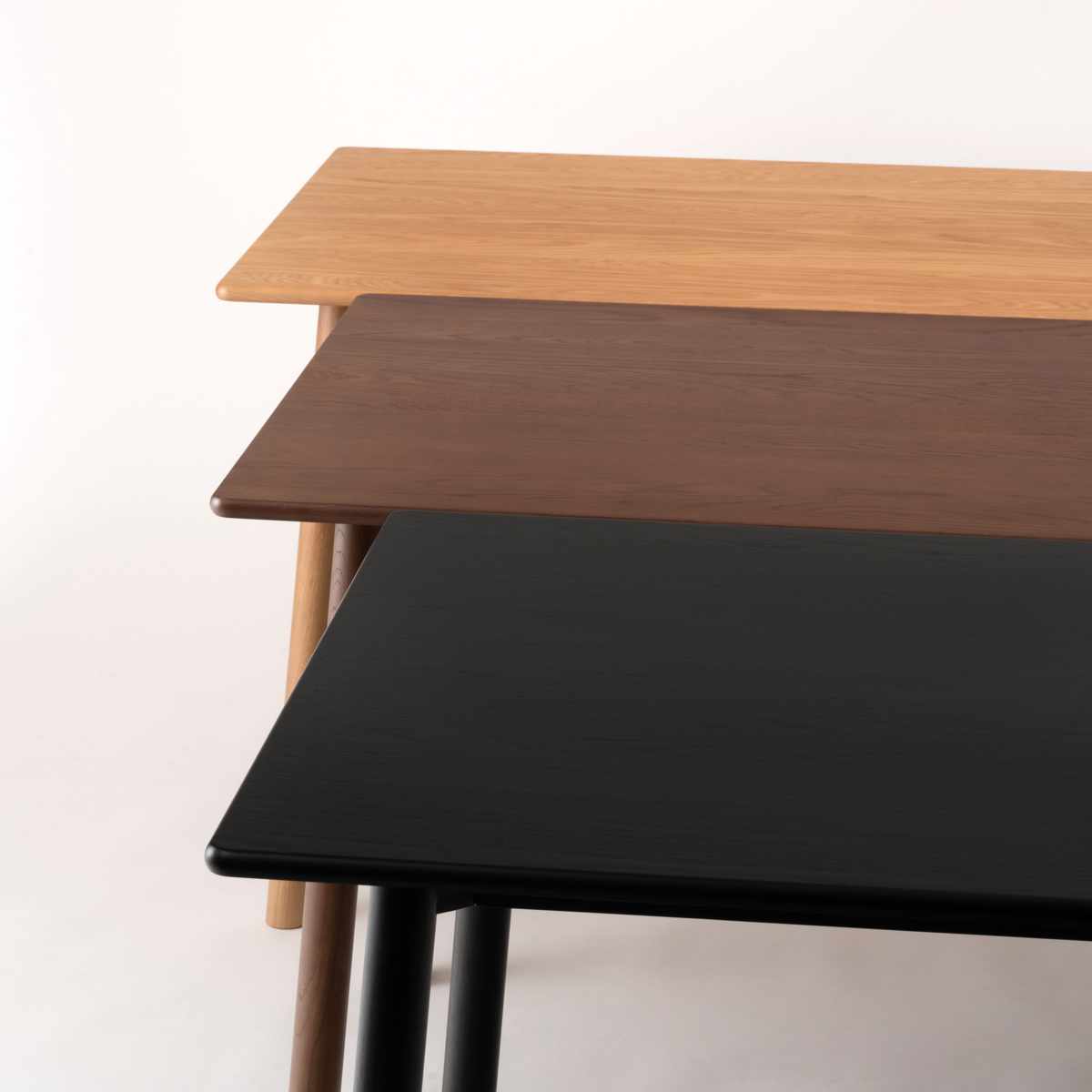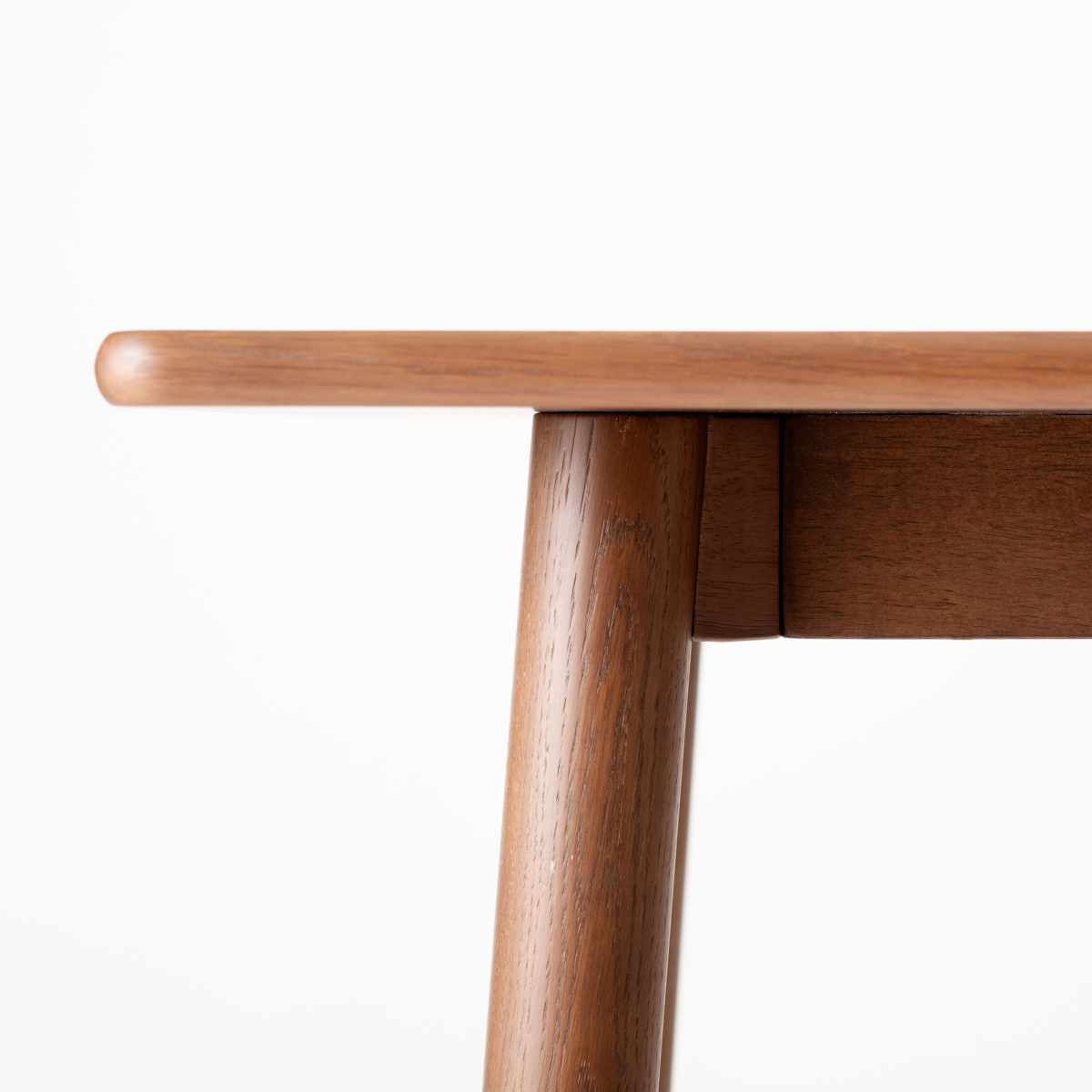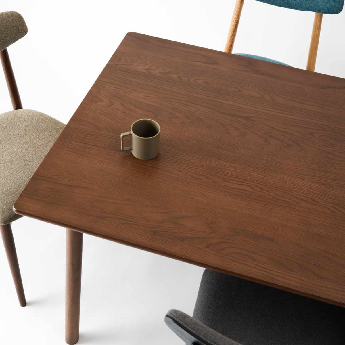 天板は厚さ1.8cmの薄型で、ストレート丸脚との組み合わせで重すぎないバランスに仕上げました。天板のエッジには丸みを持たせており、触れても安心です。