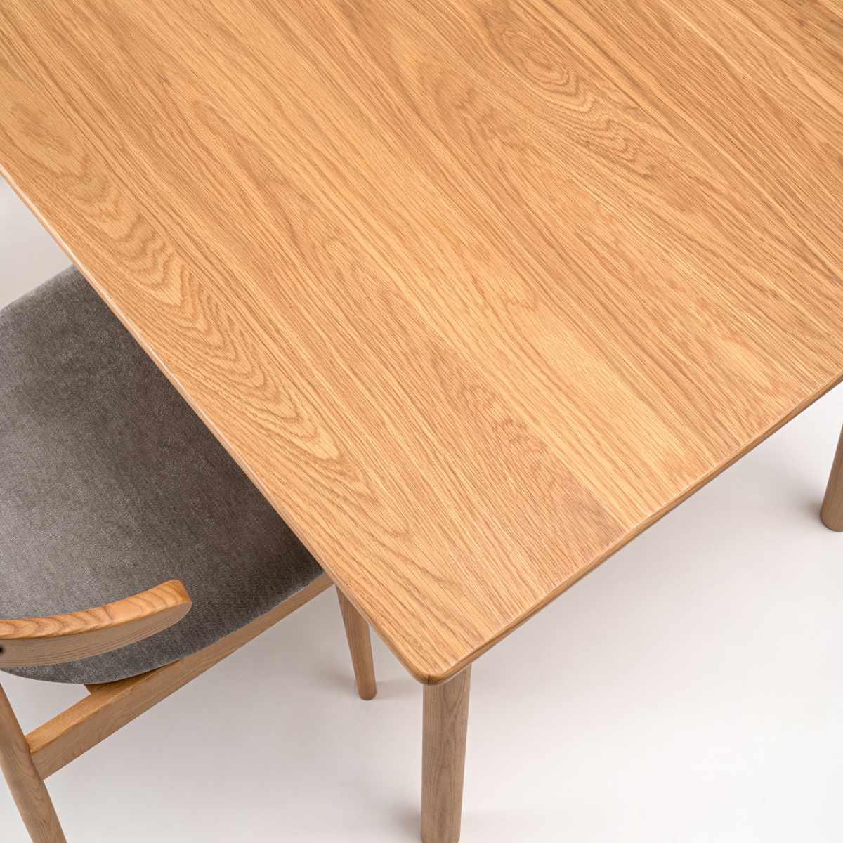 全体的に角を無くし丸みを帯びたオーク材のダイニングテーブルです。やわらかなフォルムが空間に温かみを与え、木の質感と上質さが日常の食卓を彩ります。