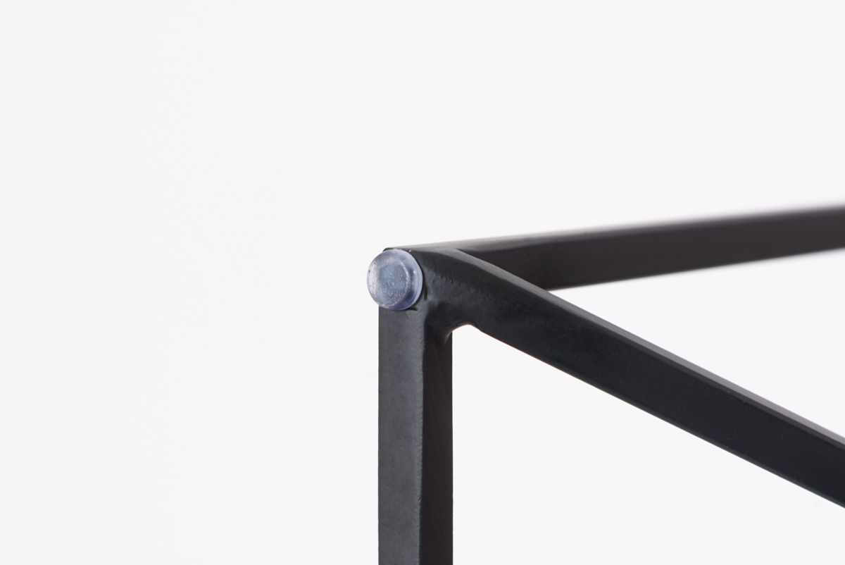 脚部はわずか1cm角の細さで、どこから見ても芸術品のように美しい形状です。サビに強く、仕上がりが美しい黒色の粉体塗装を施しています。
