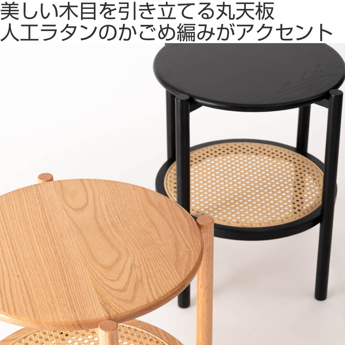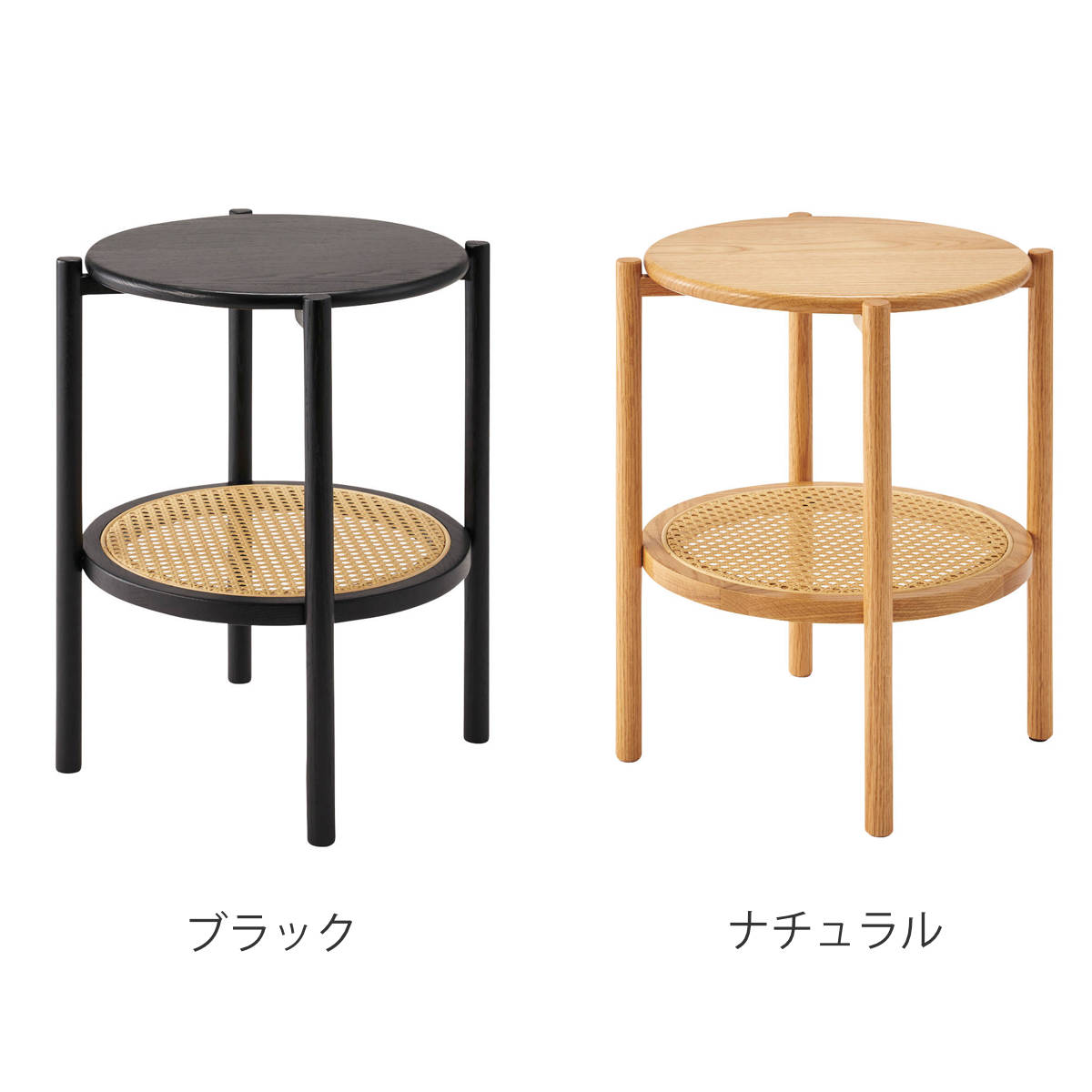 人工ラタンの棚板がアクセント。美しい木目のサイドテーブル