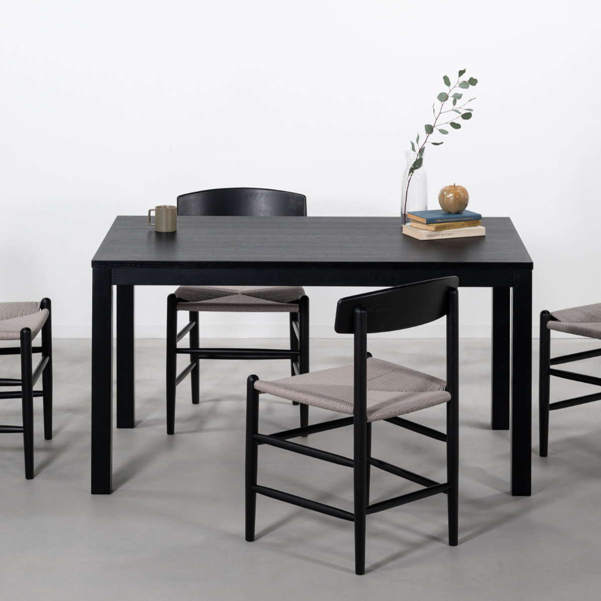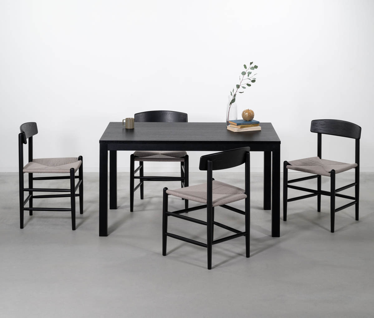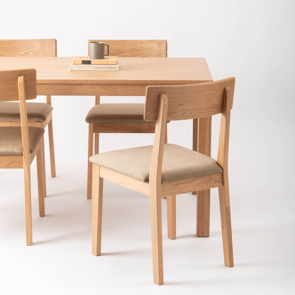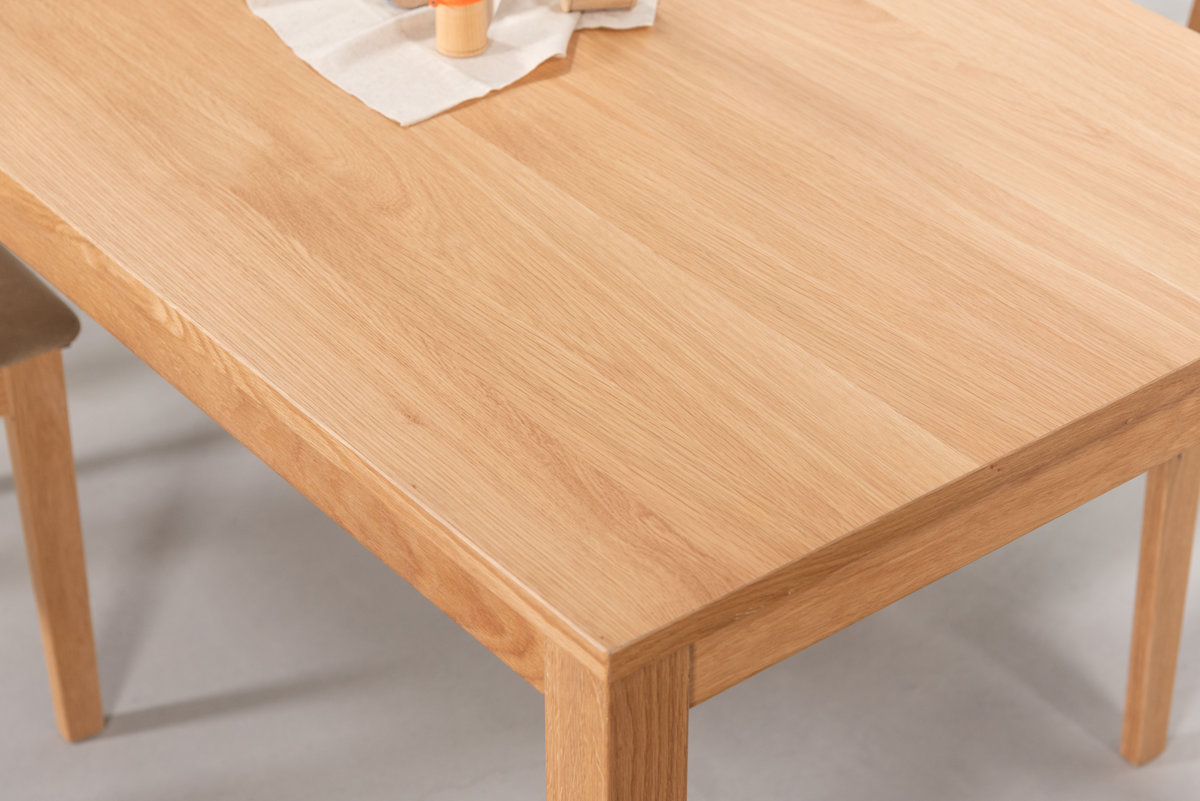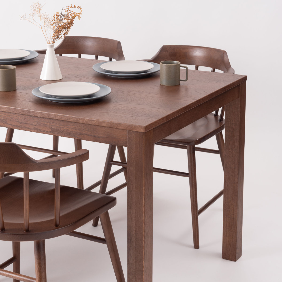 直線的デザインとオーク材の脚部が魅力のダイニングテーブル