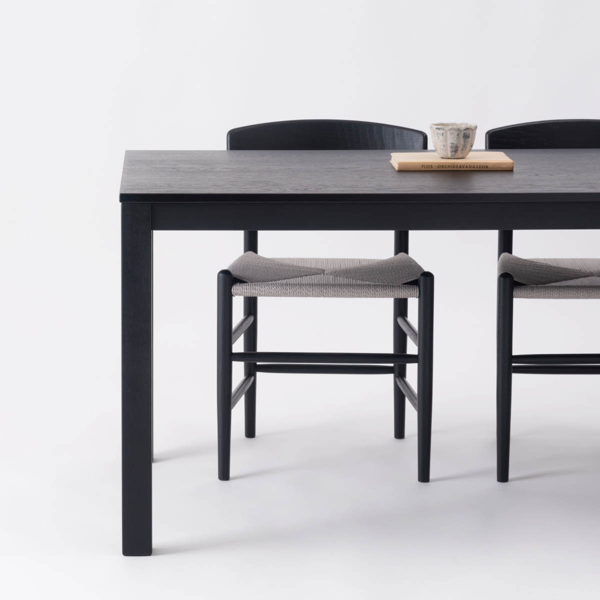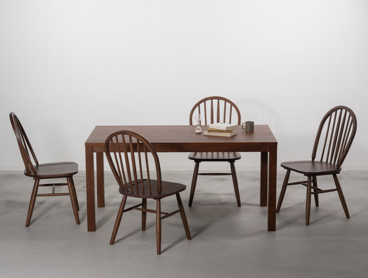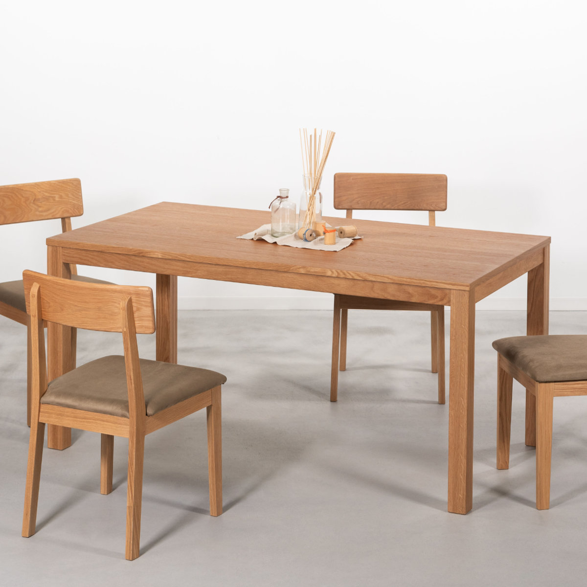 直線的デザインとオーク材の脚部が魅力のダイニングテーブル