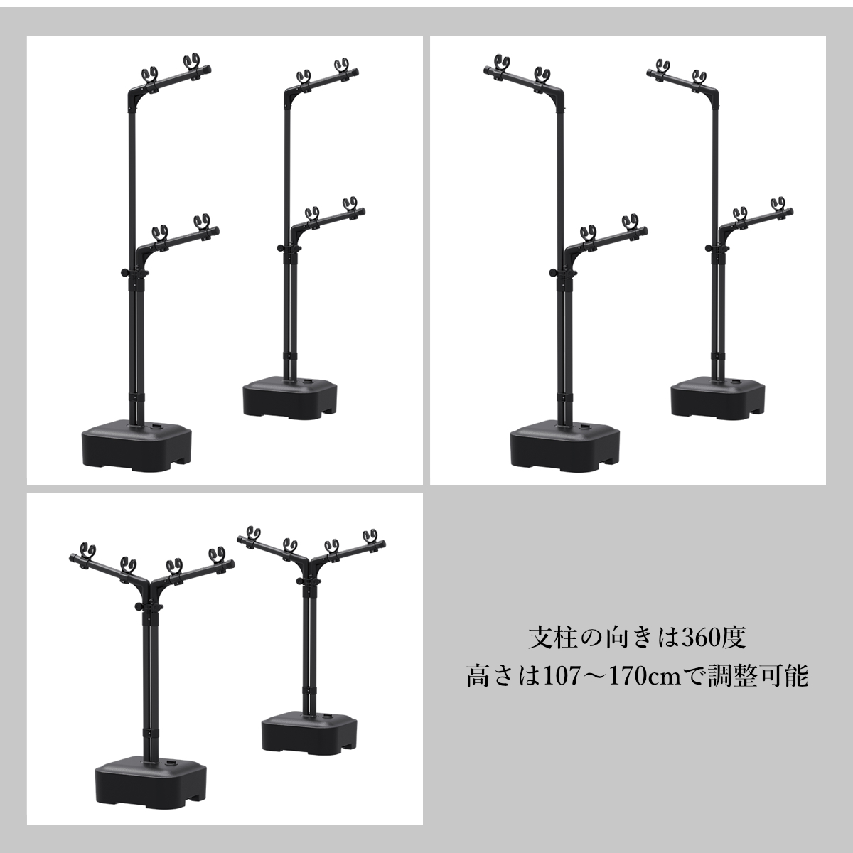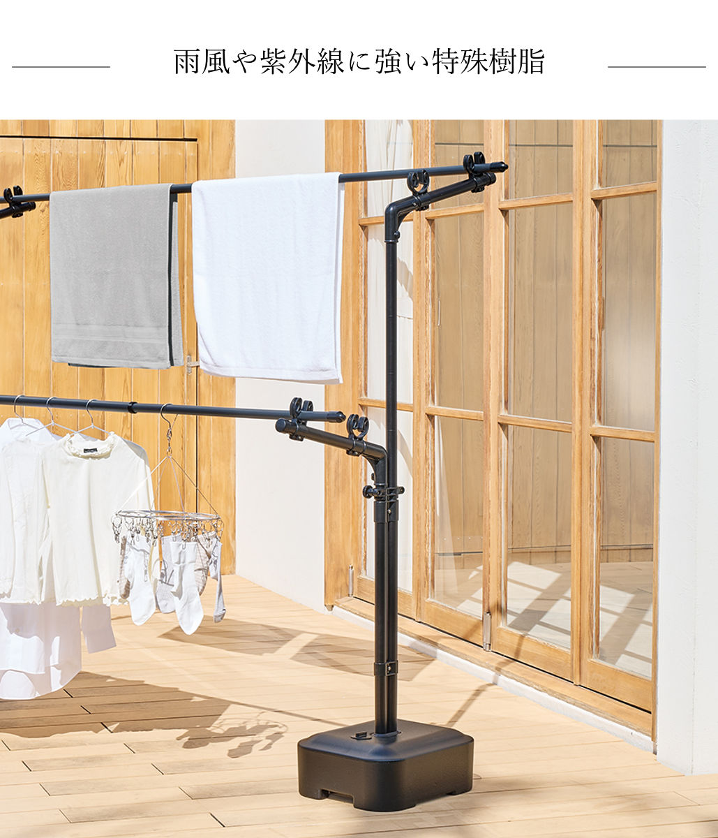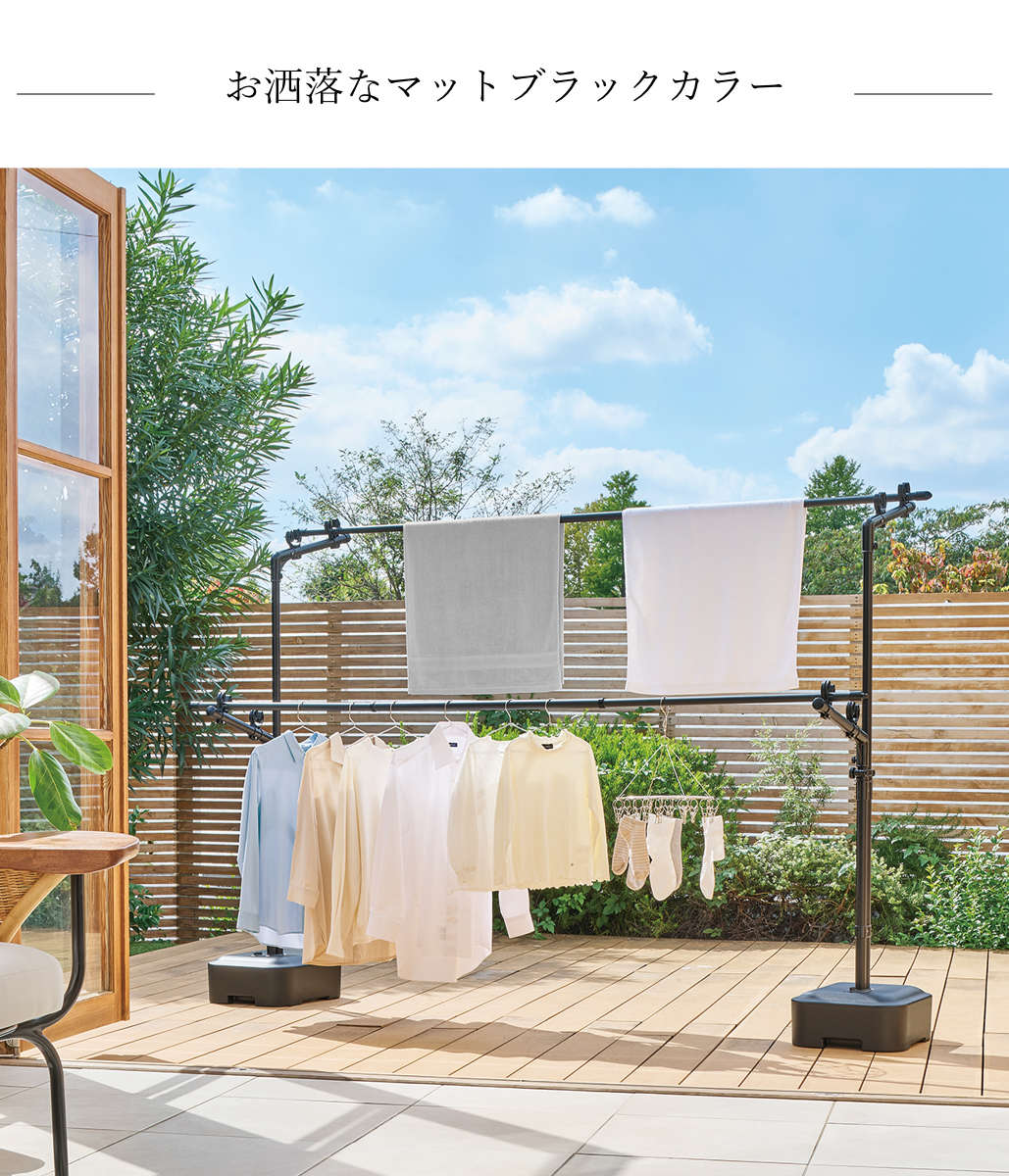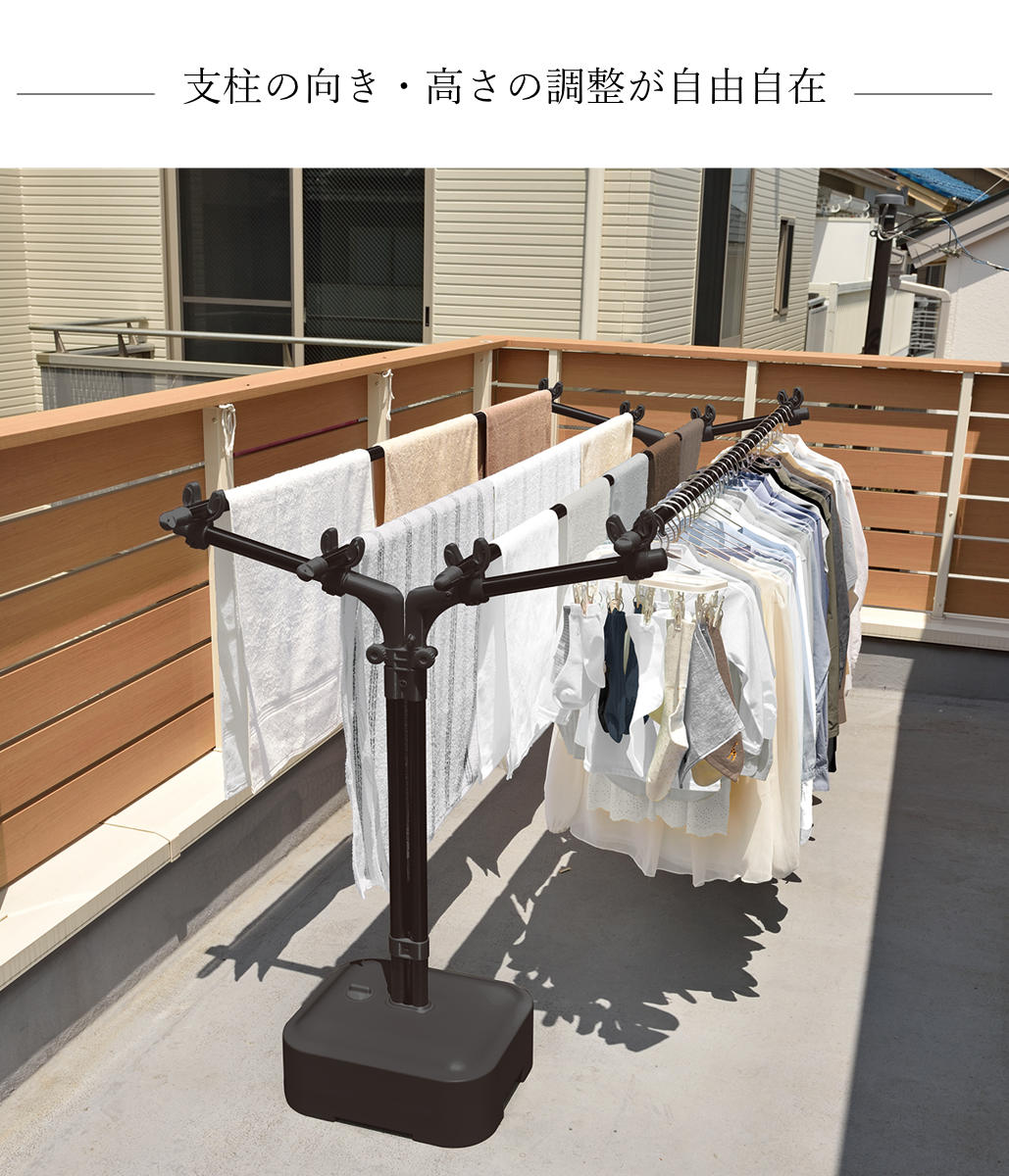 支柱の向きや高さの調整が自由自在にできます。高めに設定すると丈の長い衣類も干しやすくなり、低めに設定するとベランダでの隠し干しなどに便利です。