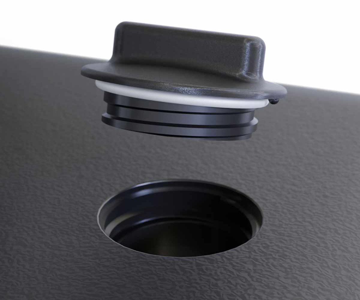 風などで飛ばないようにブロー台キャップはしっかり締められるネジ式&水が蒸発しにくいパッキン付きです。