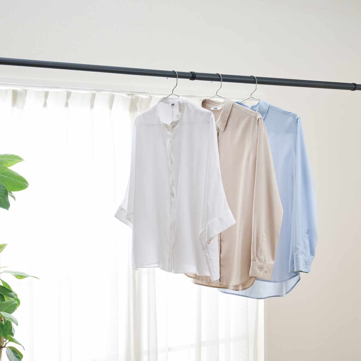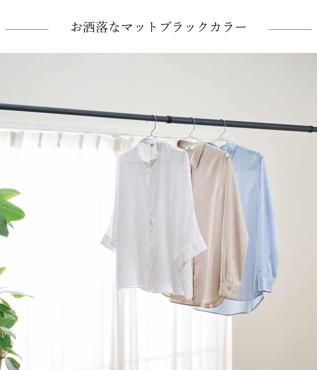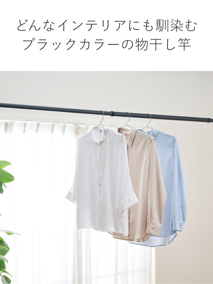 生活感が出やすい物干し竿も、落ち着いたブラックカラーなら、空間を引き締めてインテリアに自然と溶け込みます。指紋やホコリが目立ちにくいため使いやすく、シンプルながら洗練された印象を与える、見た目と実用性を兼ね備えた1本です。