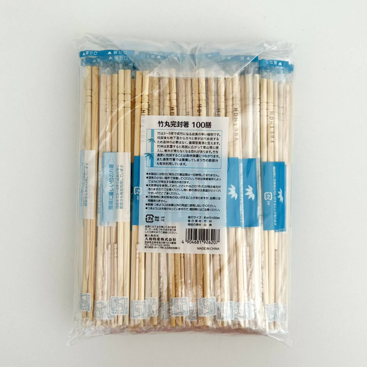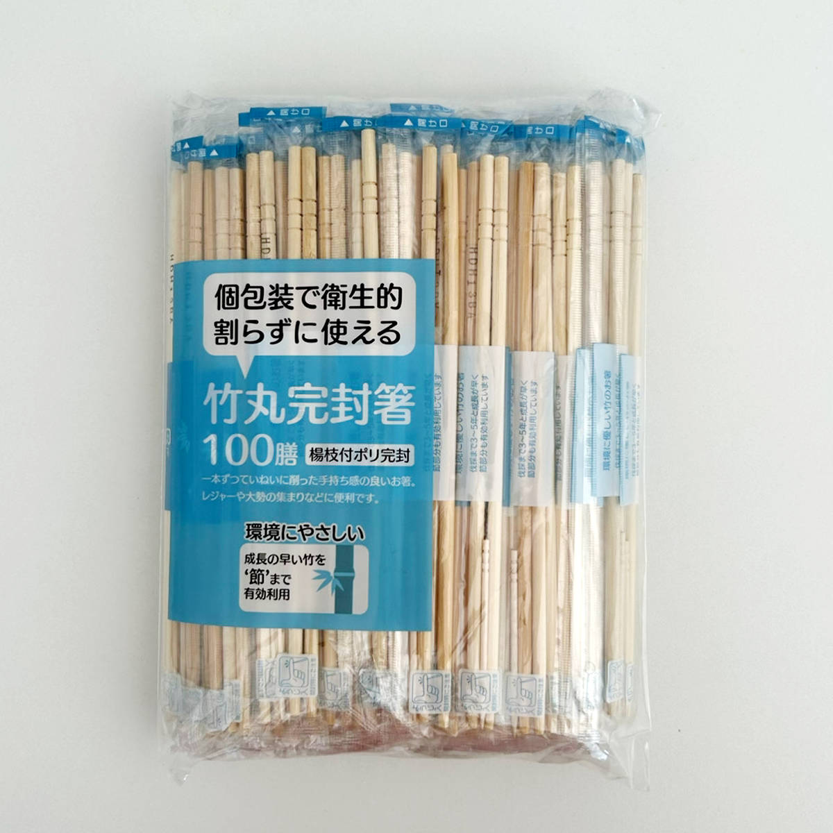 成長の早い竹を「節」まで無駄なく使った、環境にやさしい丸箸です。1本ずつ丁寧に削り上げており、手になじむ心地よい使用感です。個包装で衛生的、割らずにそのまま使えるので、レジャーやパーティーなど、大人数の集まりにも便利です。