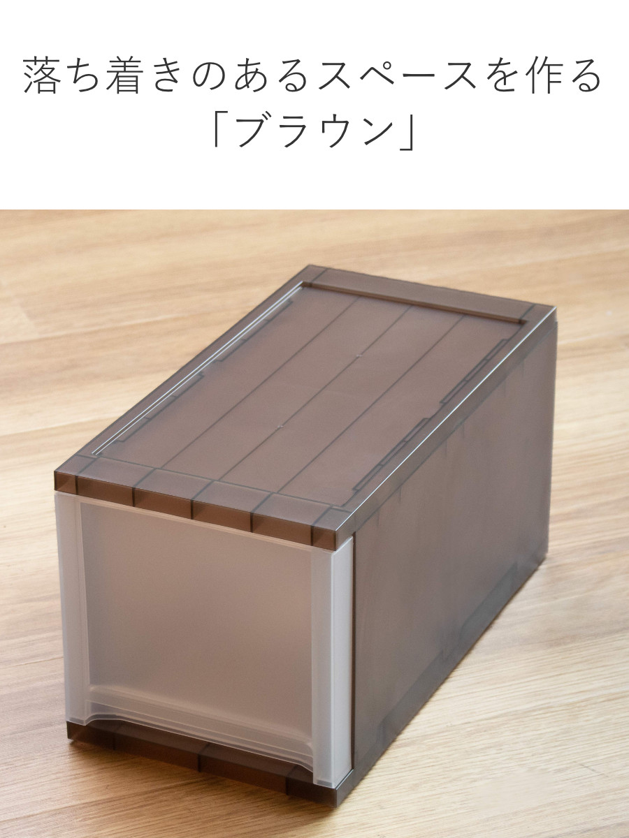 同じシリーズのワイドサイズやA4ケースと合わせて使うとスッキリ統一感のある印象に。BRIOシリーズは奥行と高さが同じなので、幅が違うサイズでも積み重ねることができます。