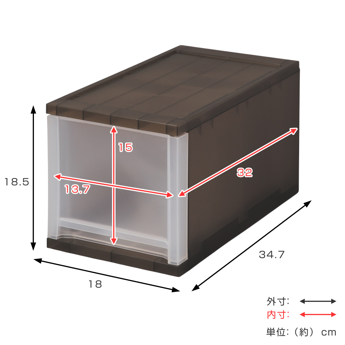 - 外寸:約幅18×奥行34.7×高さ18.5cm