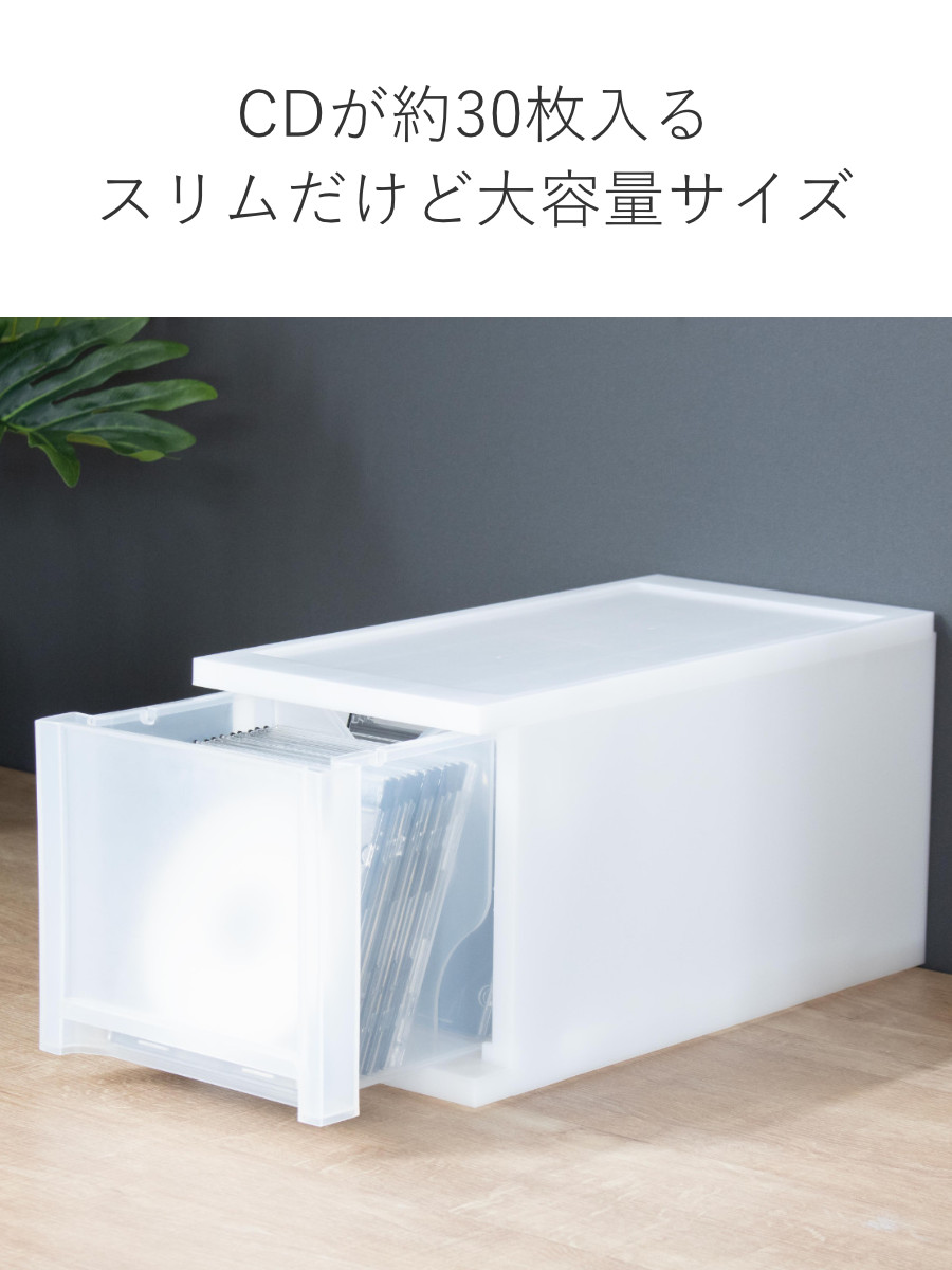 幅18cmとスリムサイズのため、デッドスペースになっている、ちょっとした隙間を有効活用することも可能に。中にはCDが約30枚入るスペースがあり、見た目以上にしっかり収納できます。