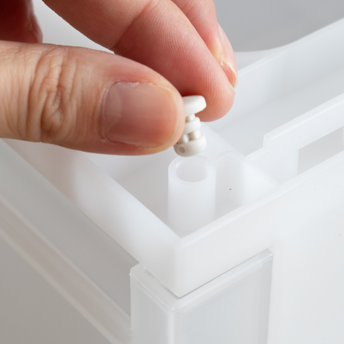 家中どこにでも設置しやすいシンプルなデザイン。キッチンでは食品のストックの収納、洗面所ではタオルやコスメの細かいアイテムの収納、デスク周りでは文具や充電コードを、まとめて整理することができます。
