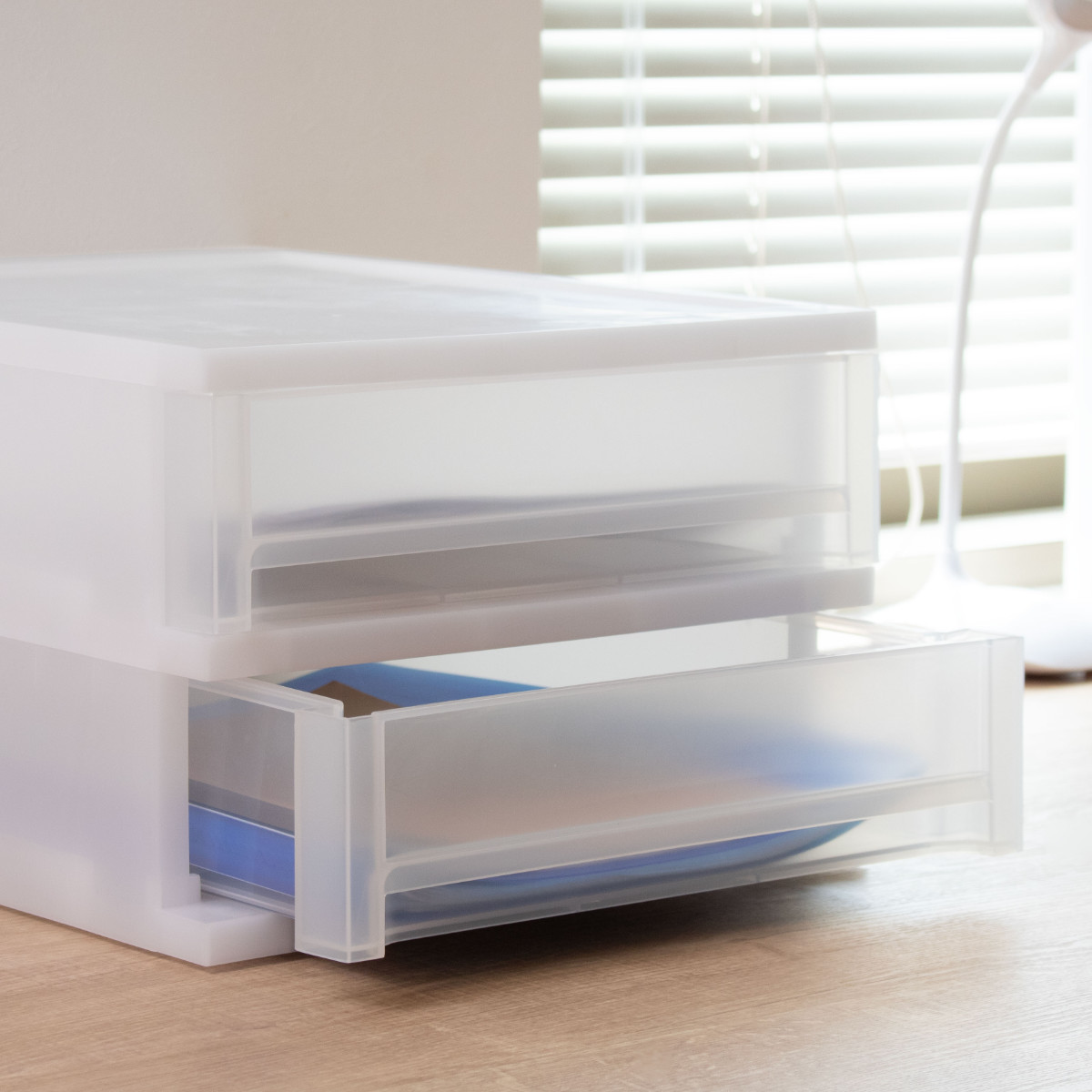 同じシリーズのスリムサイズやA4ケースと合わせて使うとスッキリ統一感のある印象に。BRIOシリーズは奥行と高さが同じなので、幅が違うサイズでも積み重ねることができます。底面と天板の凹凸がフィットする構造だから、積み重ねてもズレにくく安心です。