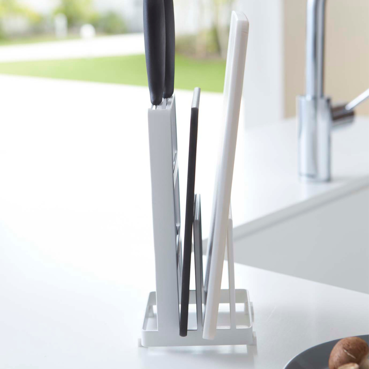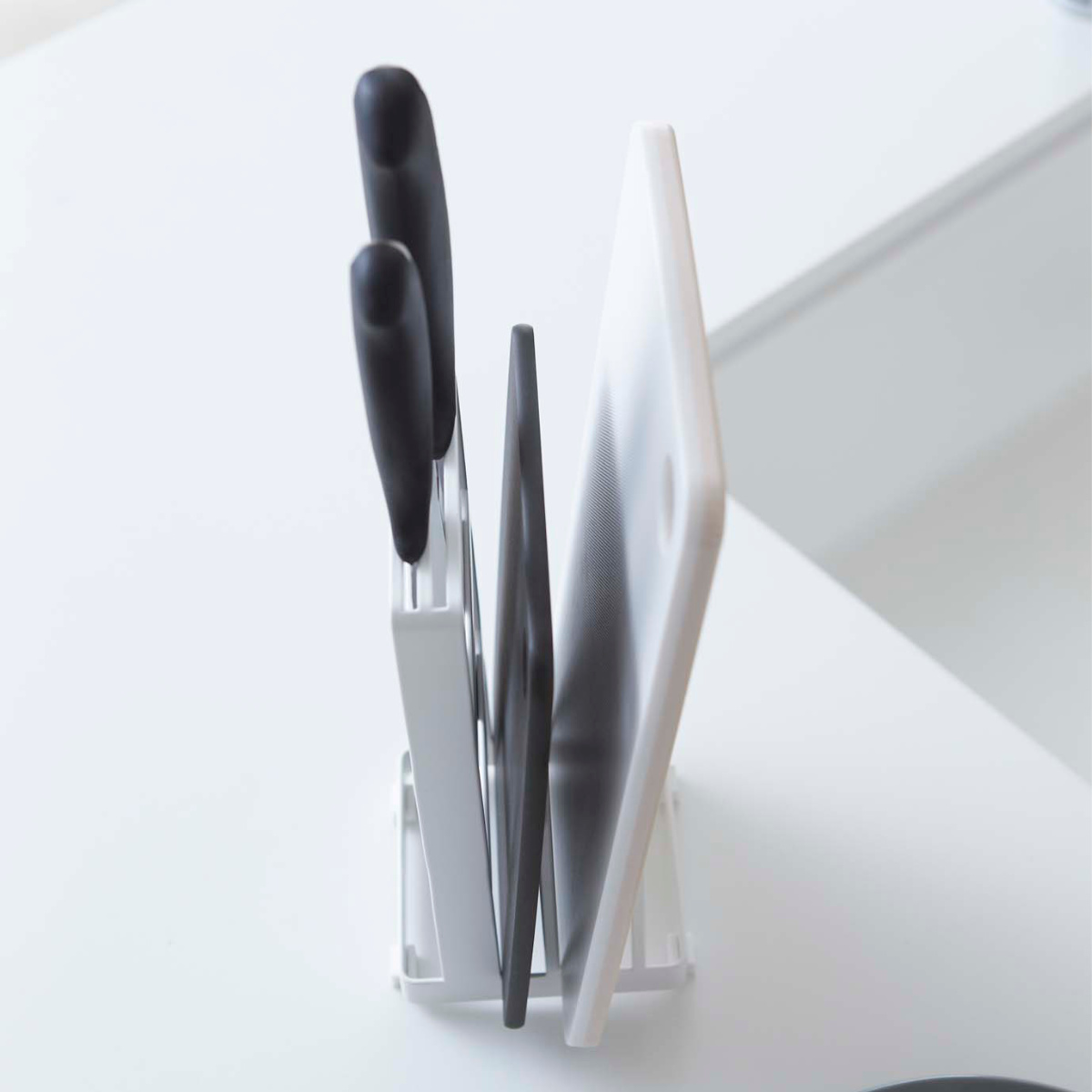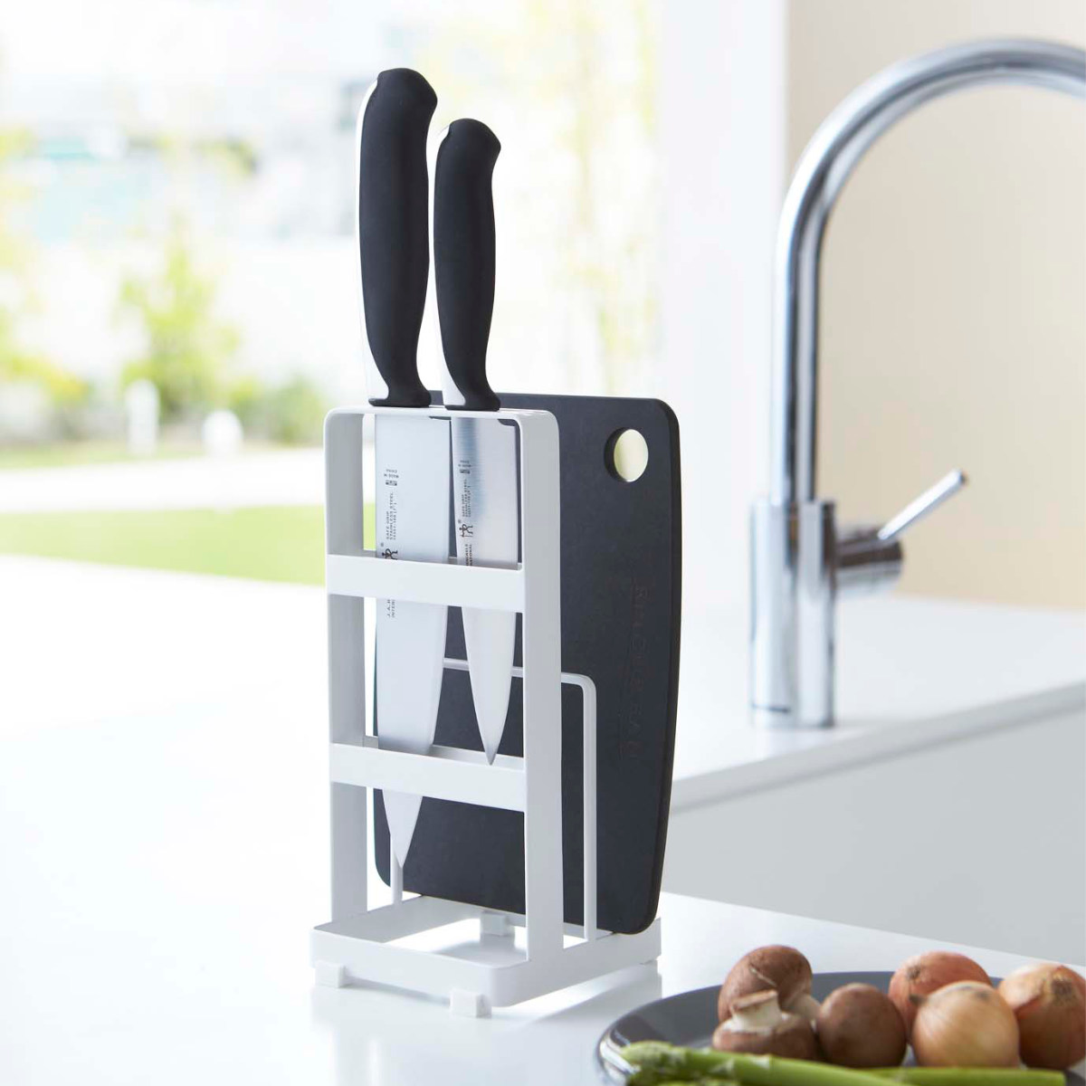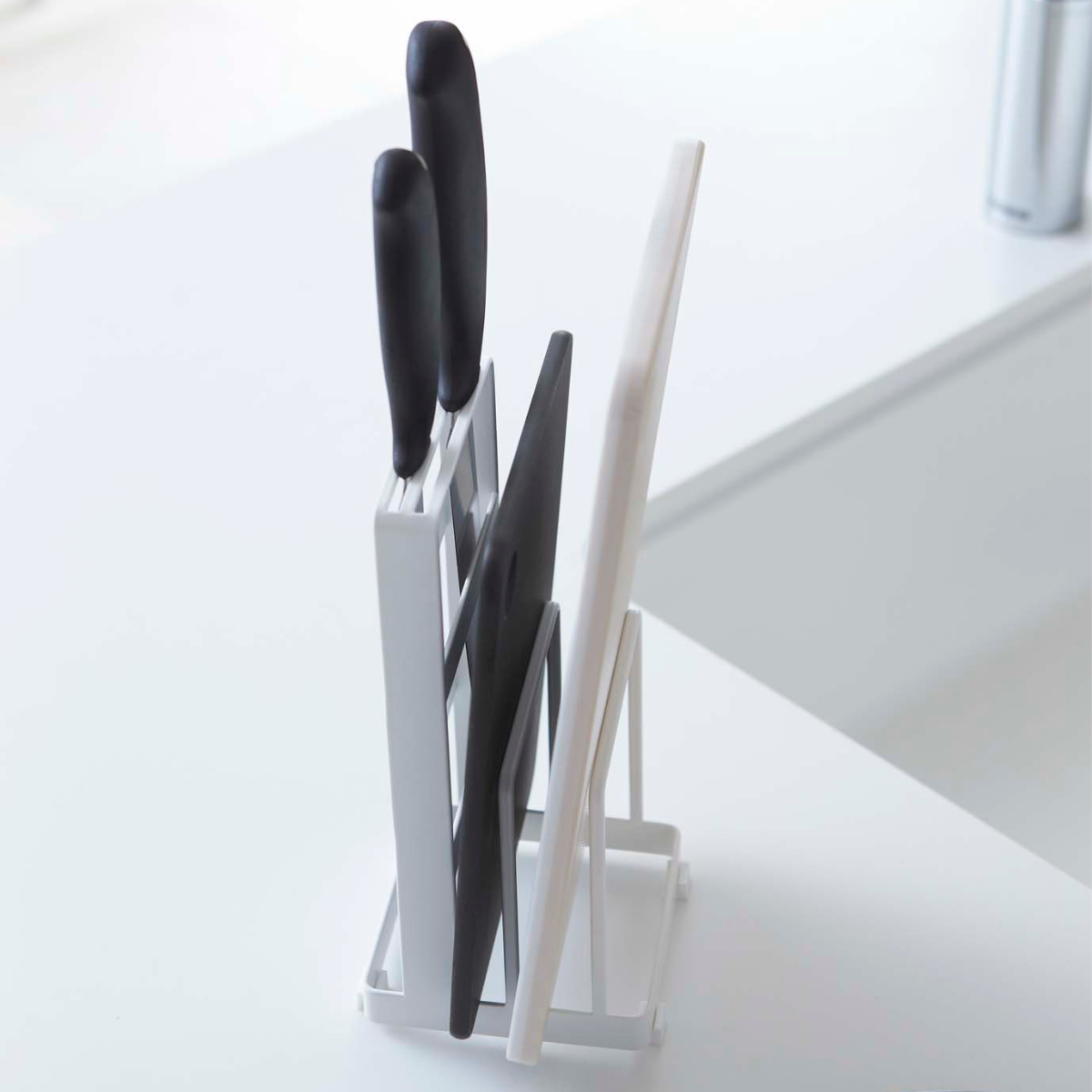 料理中に「使って、洗って、片付ける」を何回も繰り返すことも多いまな板と包丁が収納できるスタンドです。さっと取り出しやすく、風通しの良いシンプルなフレーム構造なので洗ったばかりの包丁やまな板の乾燥にも便利です。