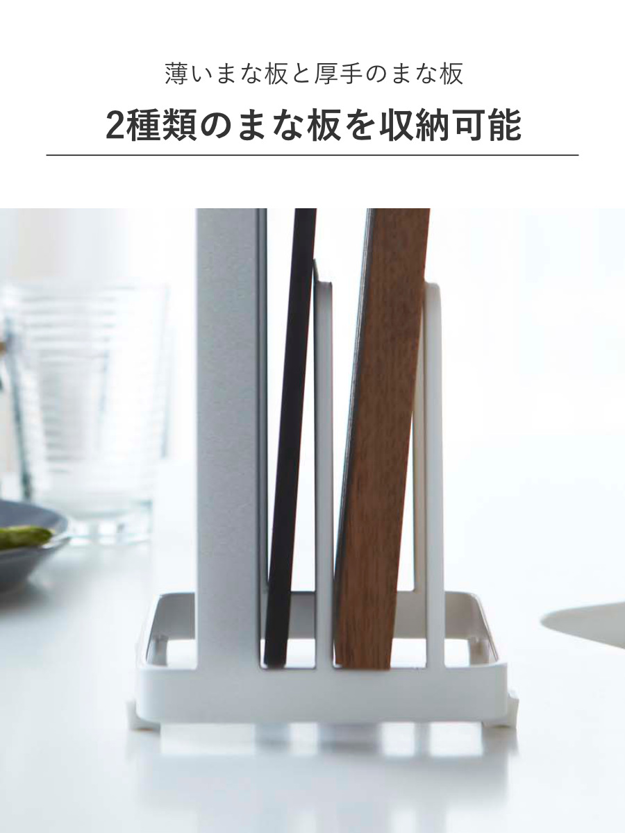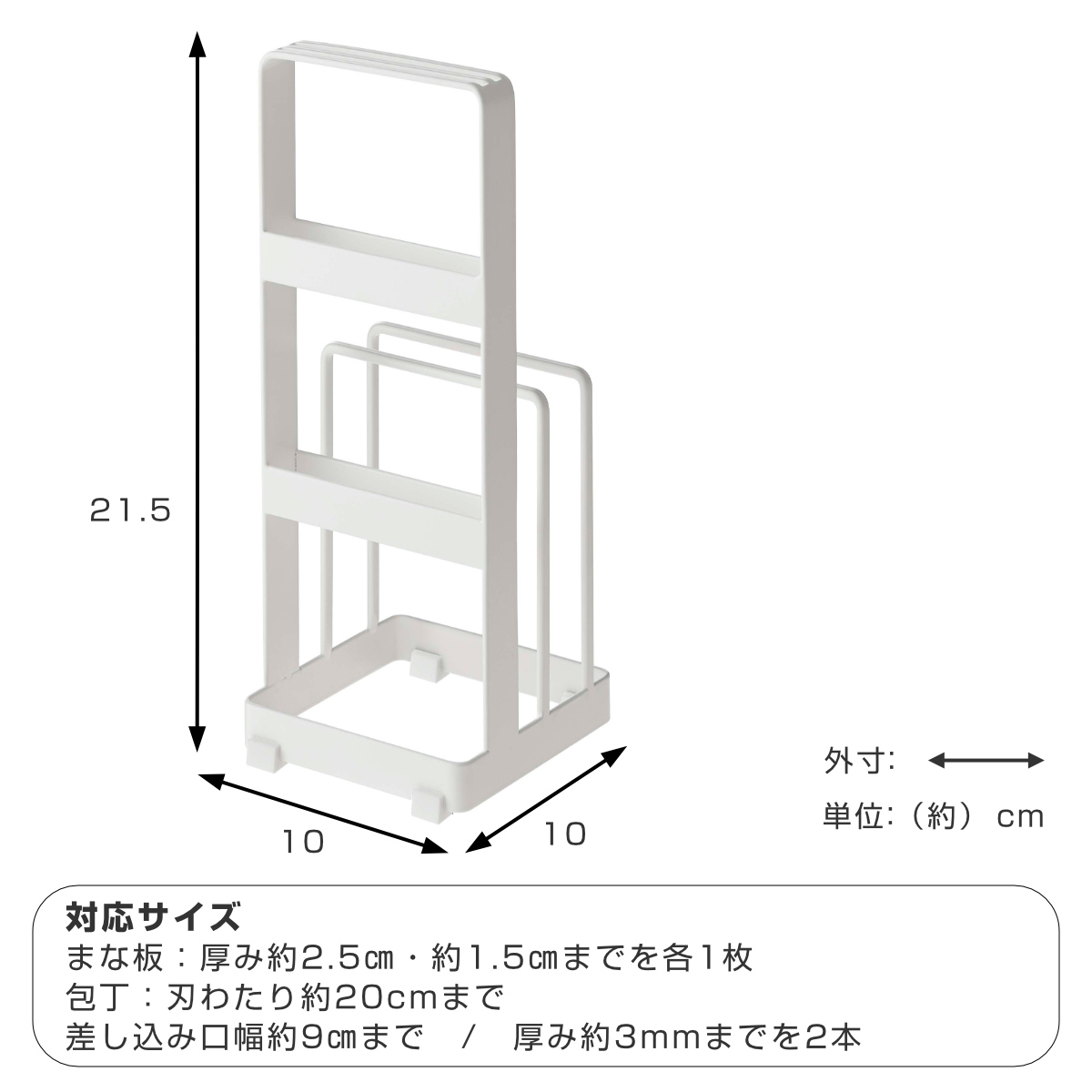 | 対応サイズ | まな板:厚み約2.5cm・約1.5cmまでを各1枚 包丁:刃わたり約20cmまで/差し込み口幅約9cmまで/厚み約3mmまでを2本 |