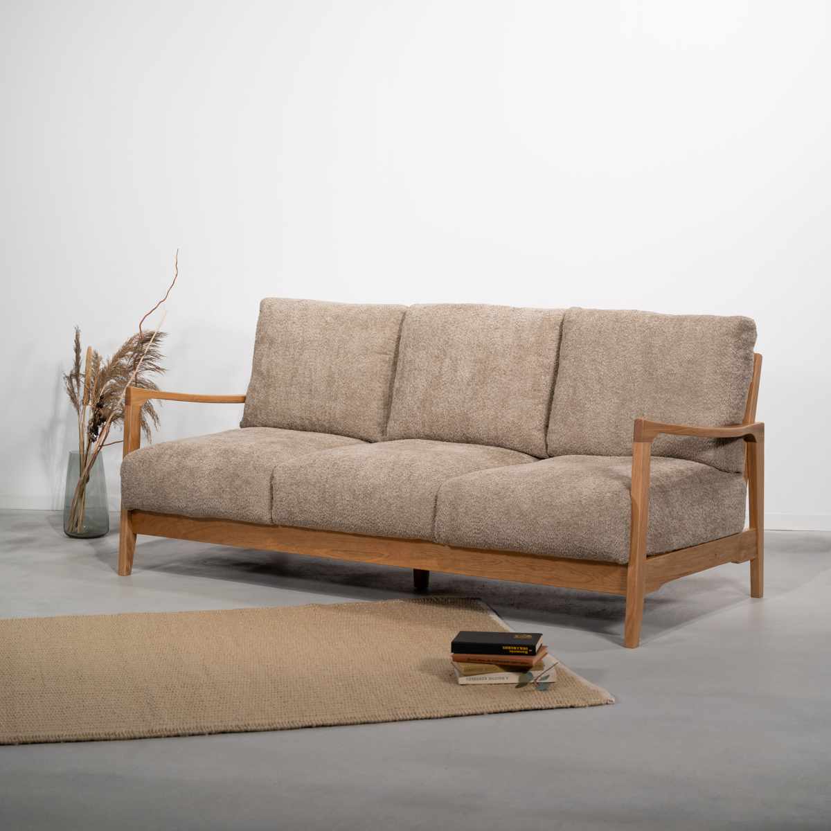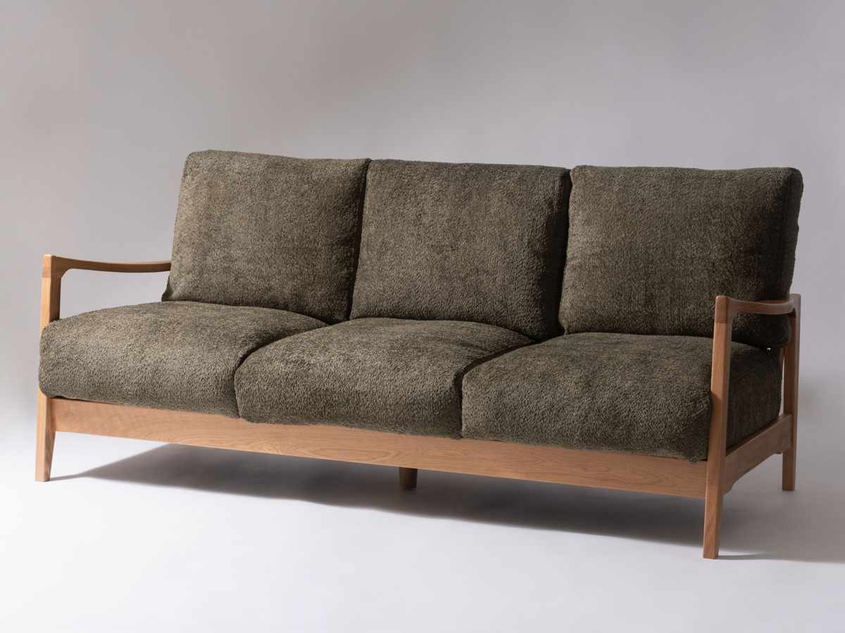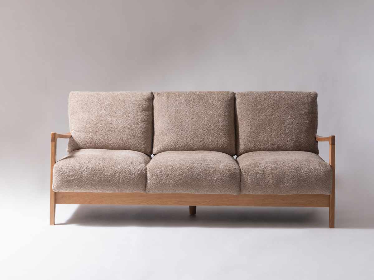 天然木×ブークレ生地のゆったりくつろげるソファ