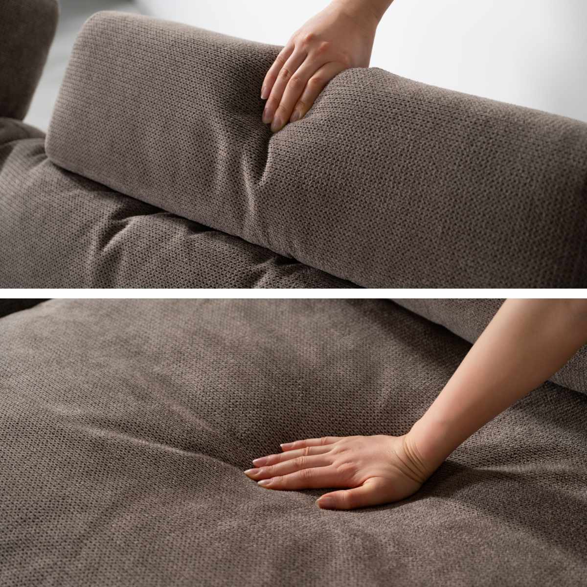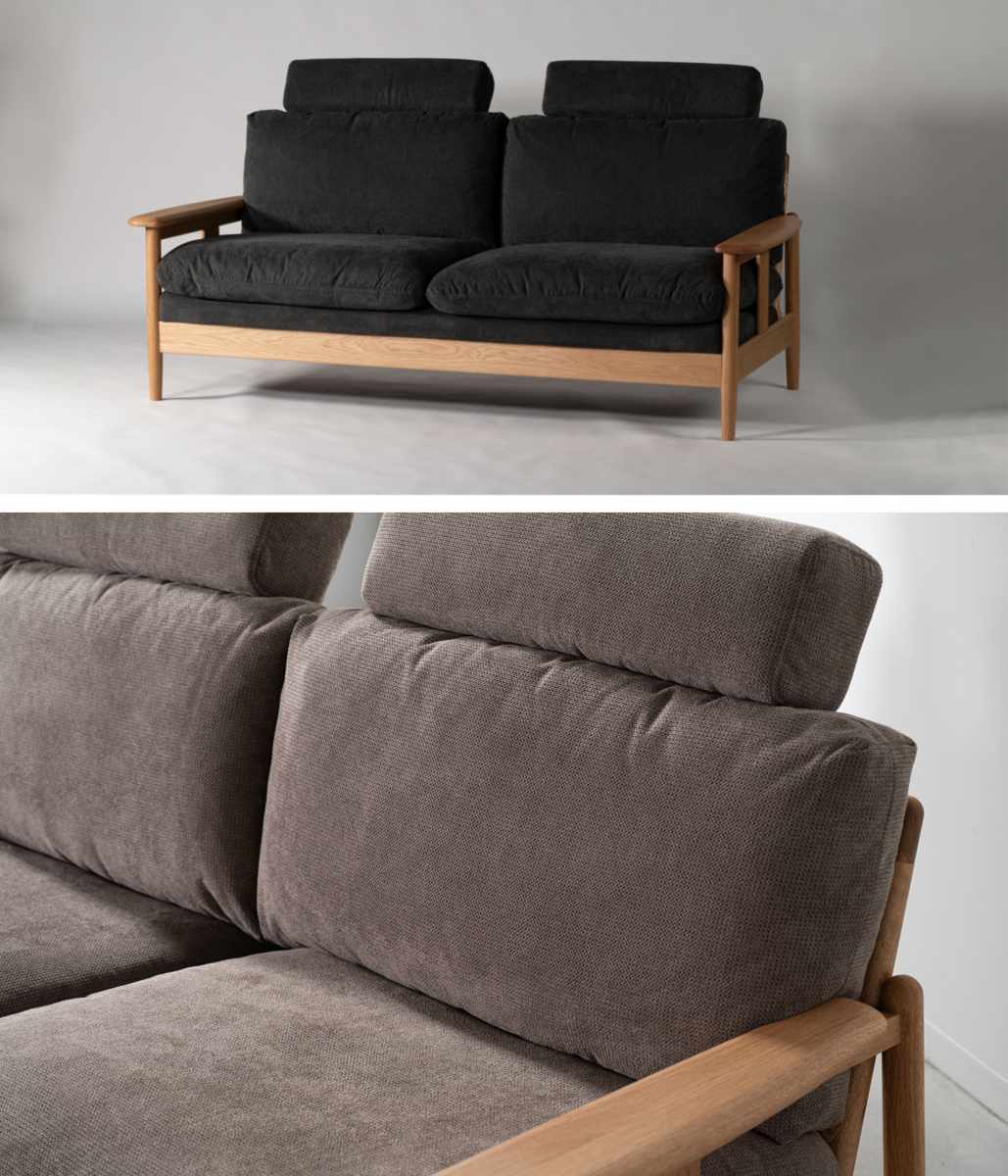 取り外し可能なヘッドレスト付きで、シーンに合わせて使い分けできます。映画鑑賞や読書の際には背中をしっかり支え、快適な座り心地を実現。外せばスッキリとした印象になり、お部屋の雰囲気に合わせてアレンジできます。