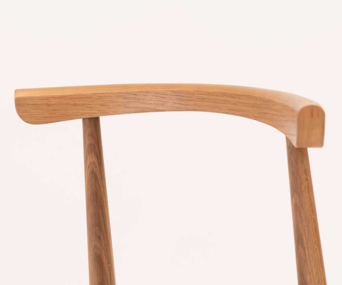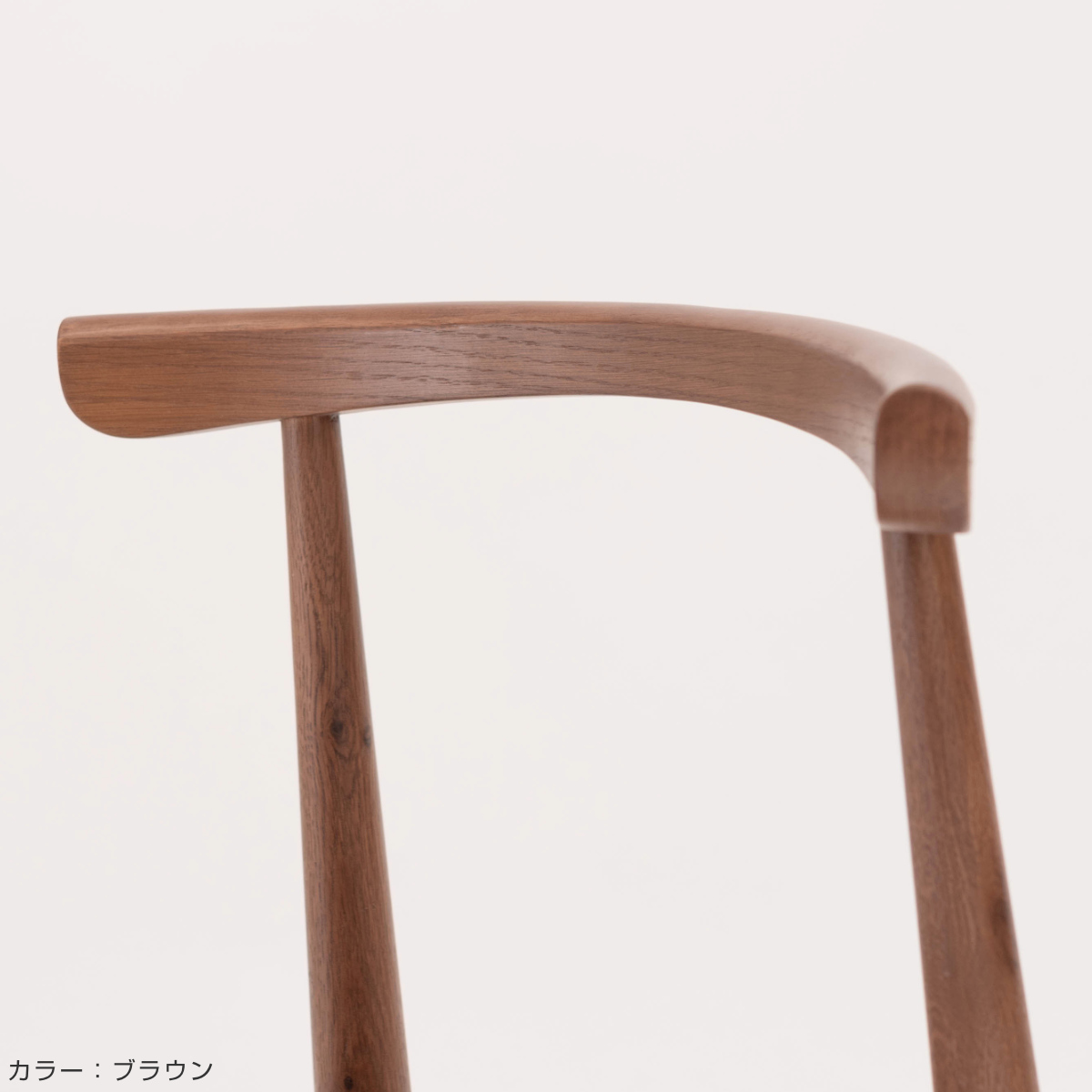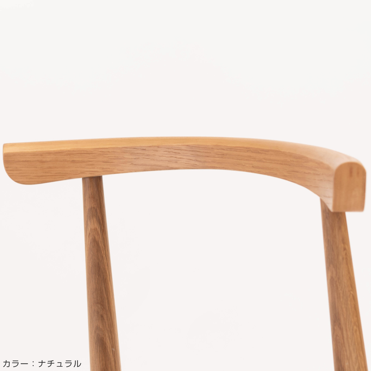 背もたれは、なめらかなカーブで身体をやさしく支え、後ろ姿まで美しく仕上げています。中央部分を細く、先端部分を太くすることで椅子を引く際に握りやすいです。
