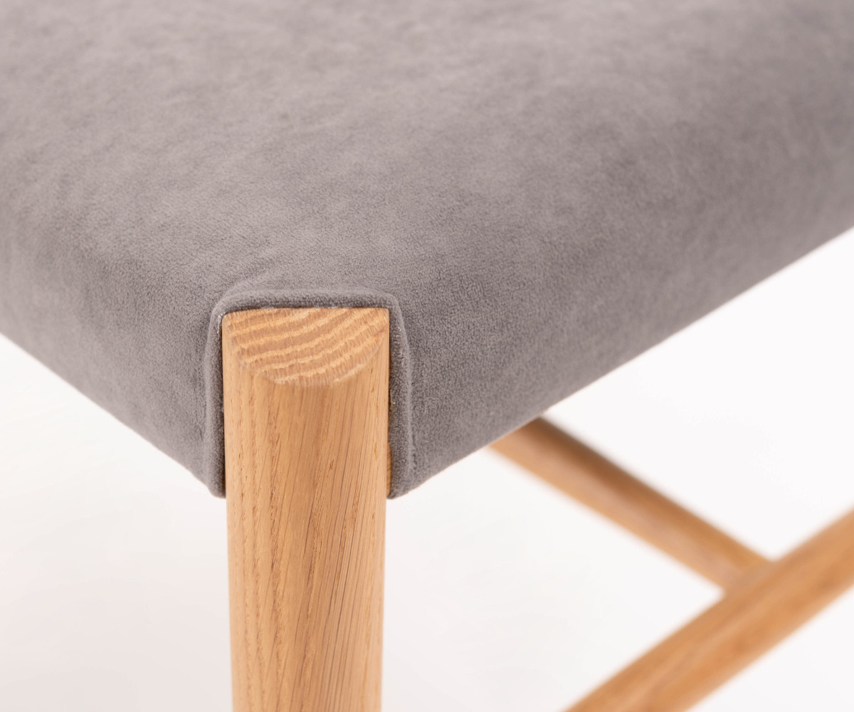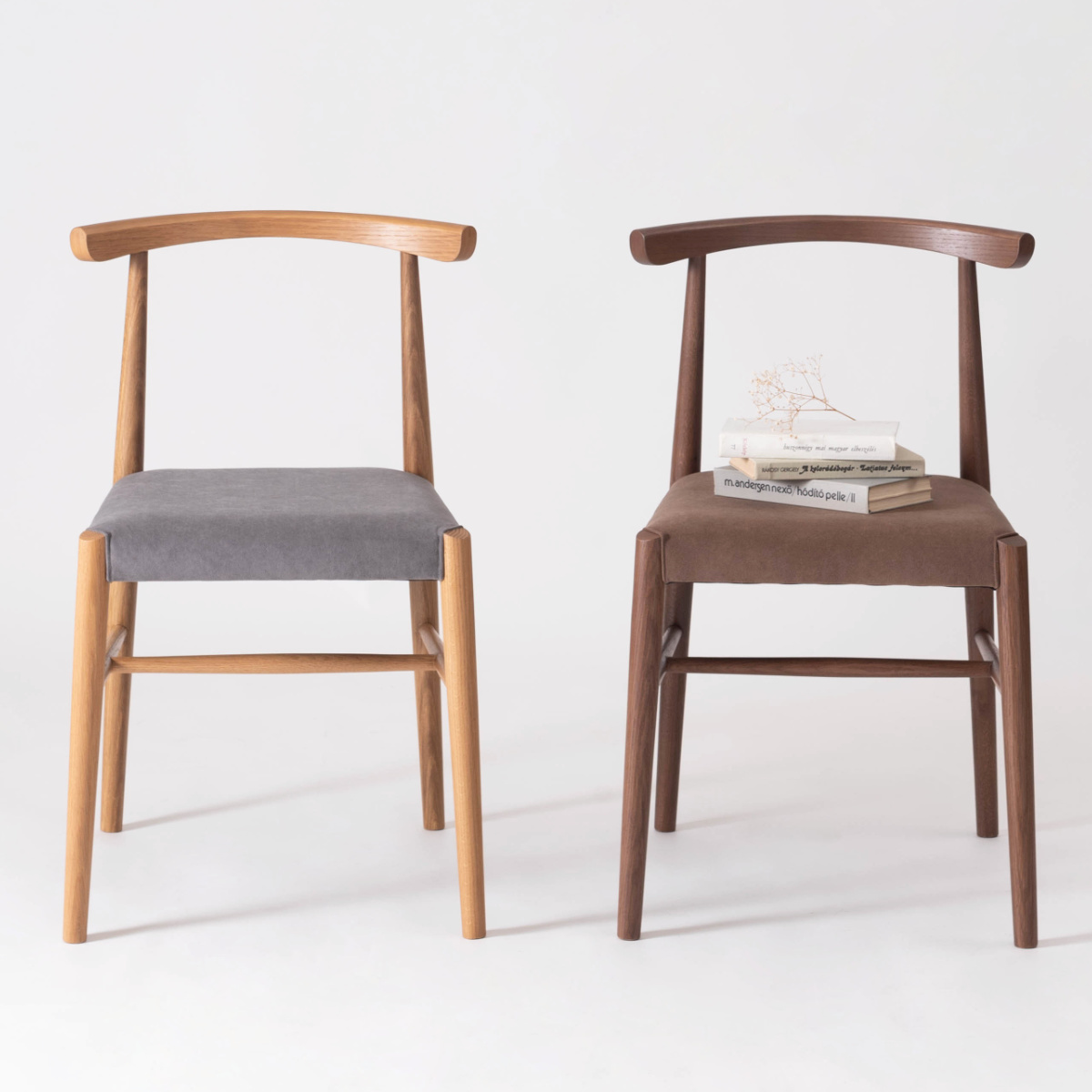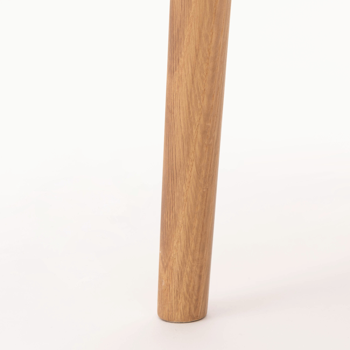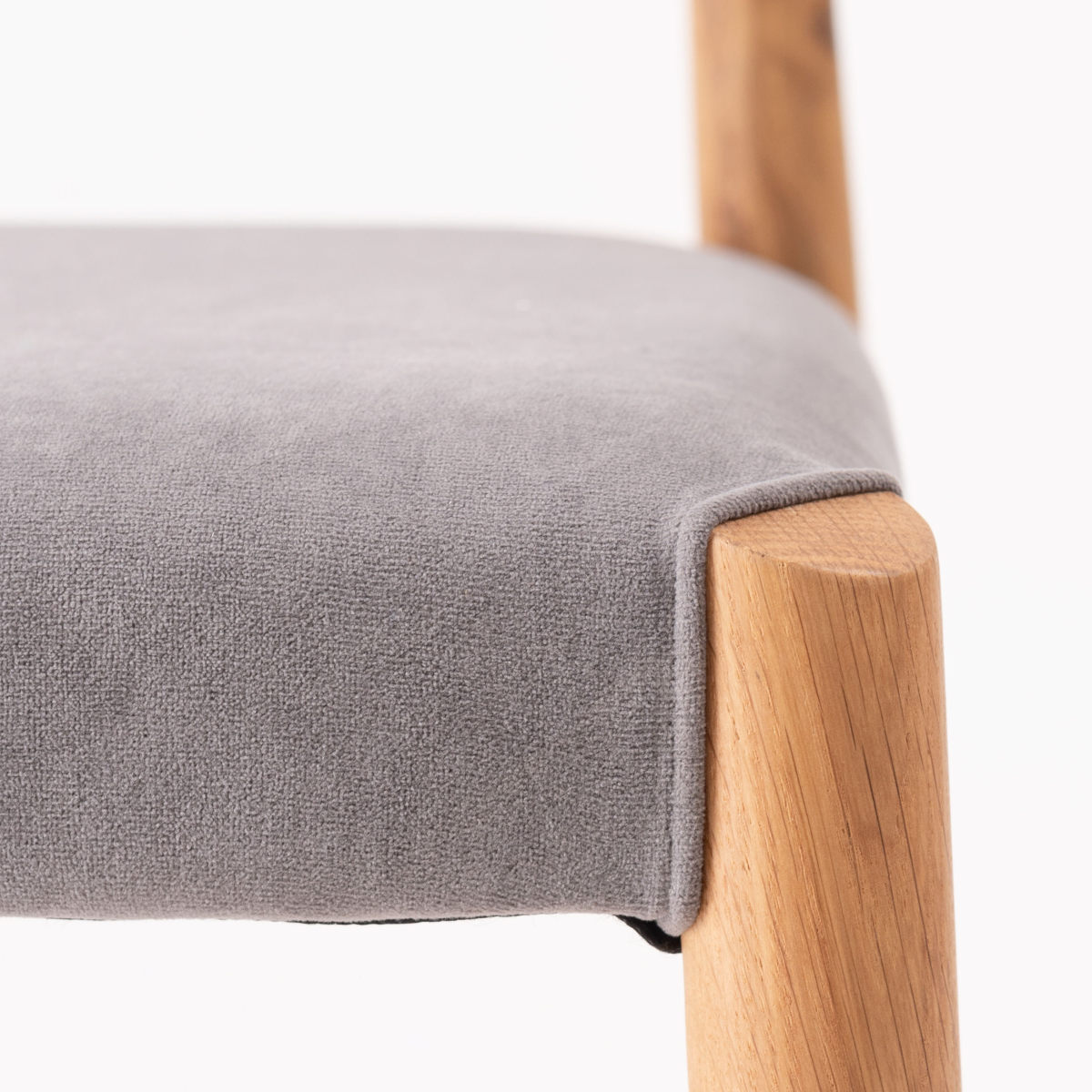 オーク材の美しさに調和する座面生地を採用したダイニングチェアです。天然木のやさしい雰囲気をそのまま楽しめるシンプルなフレームは、飽きがこず、長くお使いいただけます。