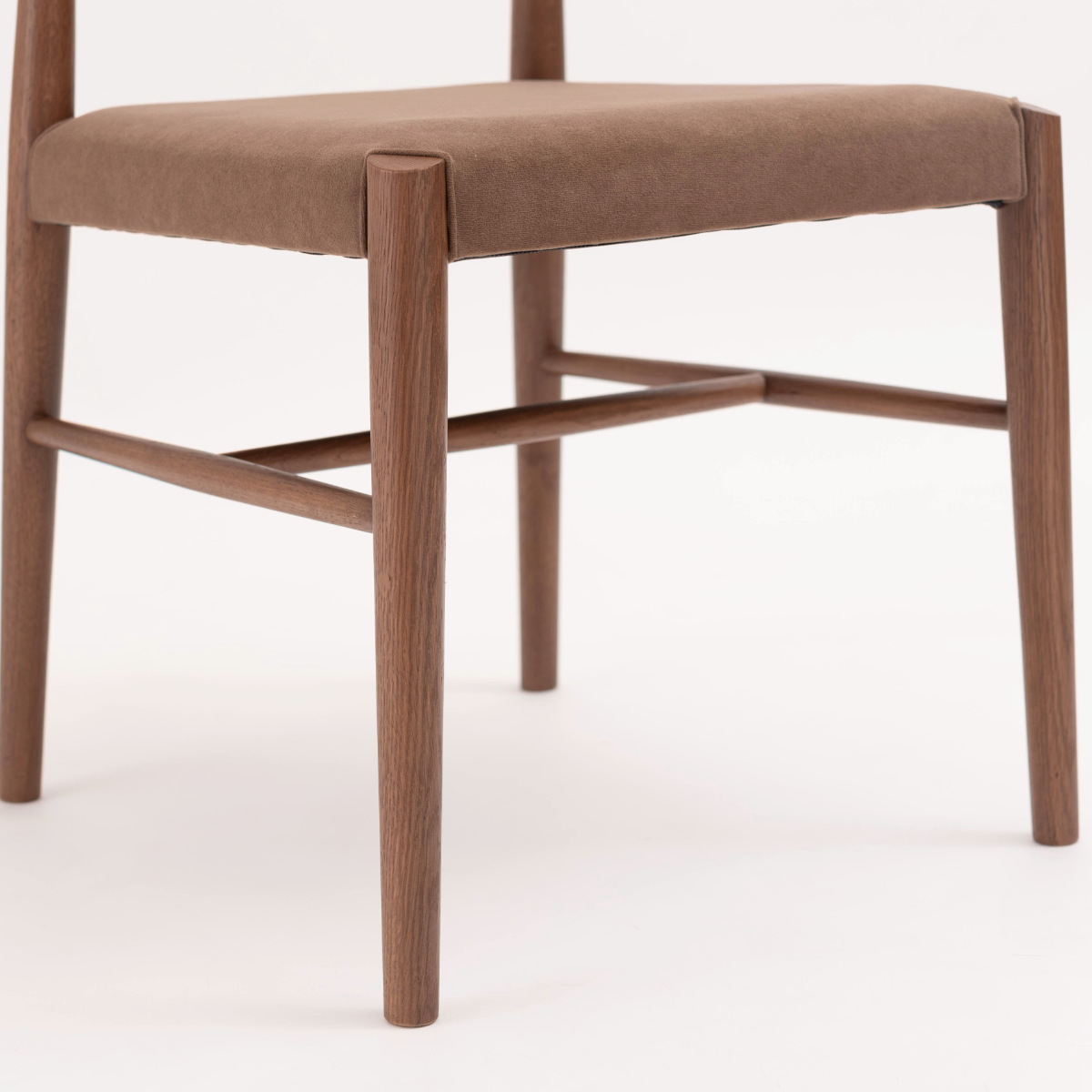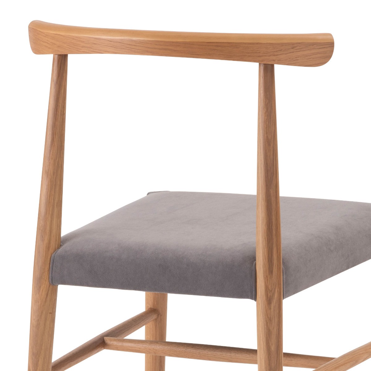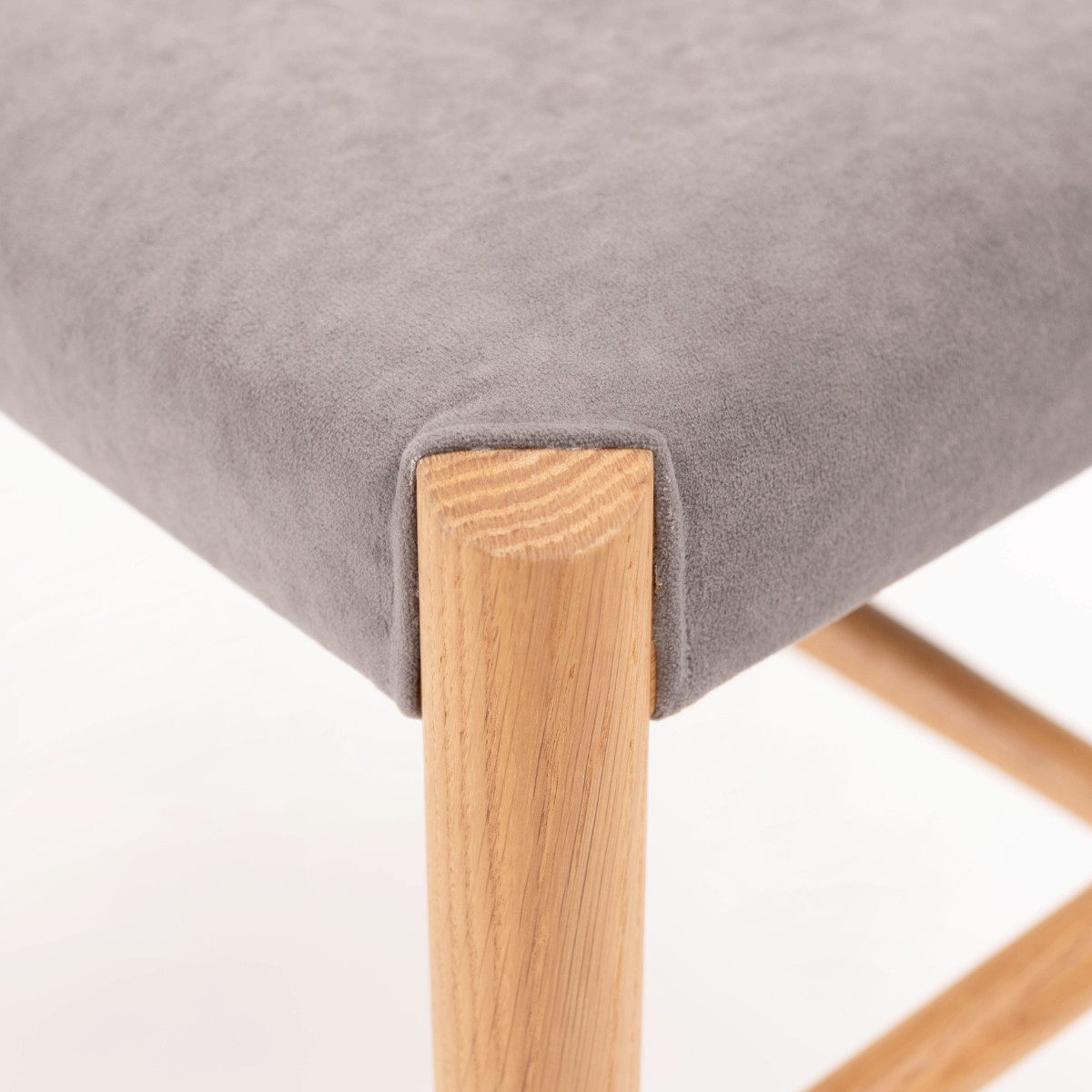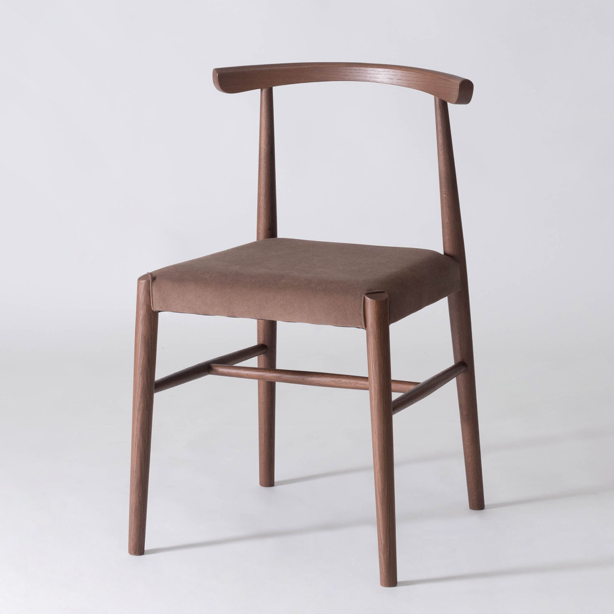 オーク材の美しさに調和する座面生地を採用したダイニングチェアです。天然木のやさしい雰囲気をそのまま楽しめるシンプルなフレームは、飽きがこず、長くお使いいただけます。
