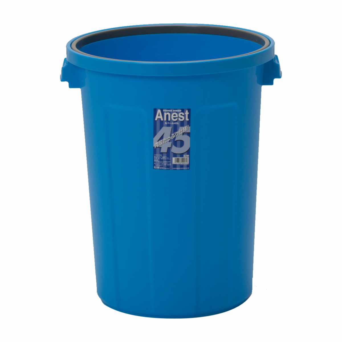 ゴミ箱「アネスト」シリーズ、丸型ペール45Lです。頑丈なボディと使い勝手を考えた機能的なデザインで、屋外の使用にピッタリです。